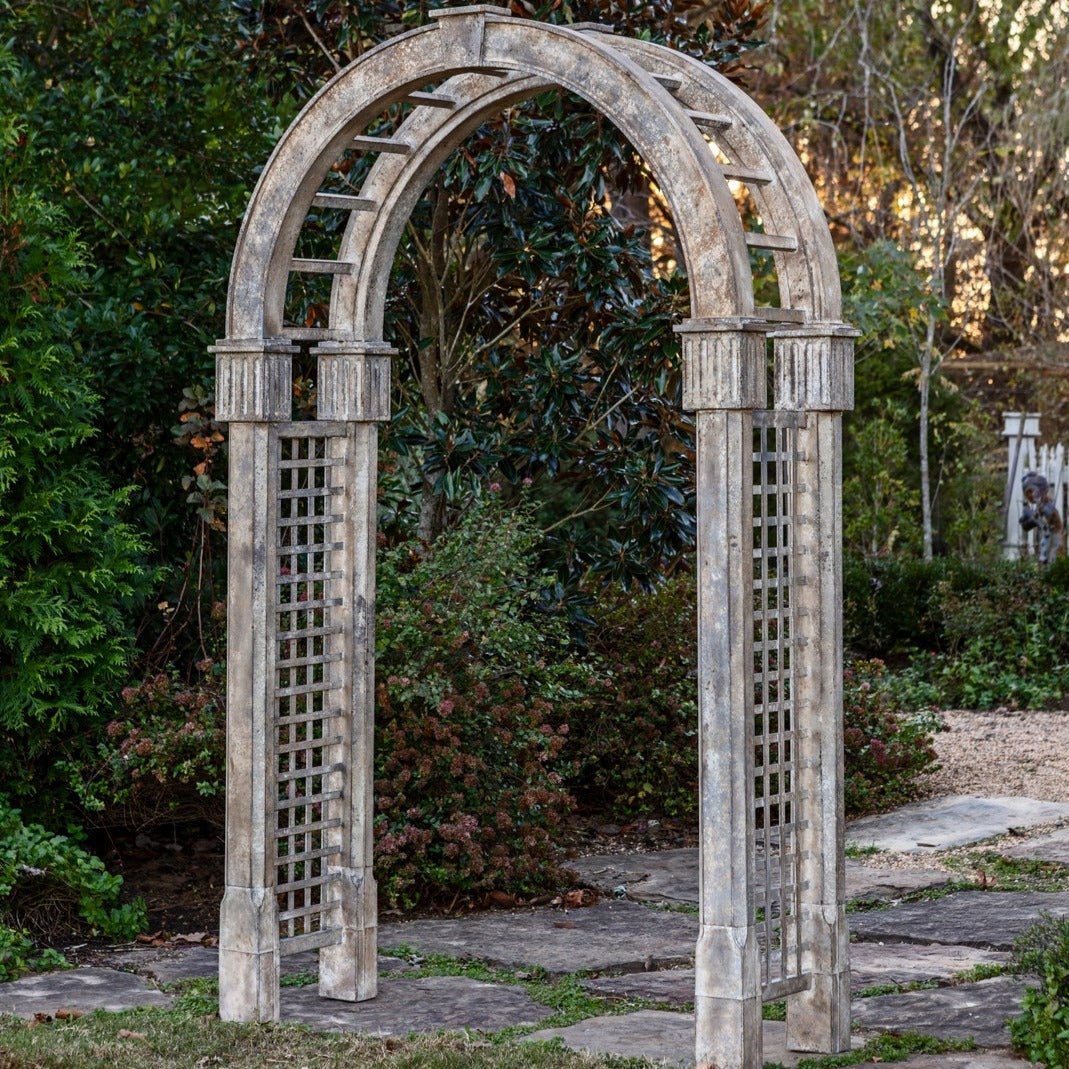 This sturdy Aged Metal Garden Arbor, featuring a perfectly aged patina, is a beautiful focal point for your backyard or patio and decorates easily with the seasons to create a unique backdrop for enchanting photos.