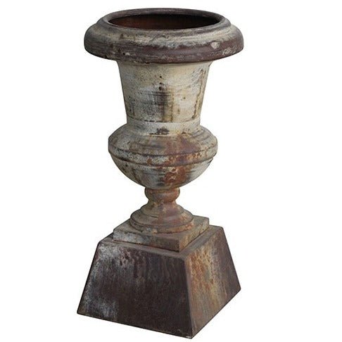 Featuring a rusty metal finish, these metal urns are sure to add beauty and charm to any space while housing anything from topiary trees to fresh flowers, whether it be the fireplace mantel or your dining room sideboard.