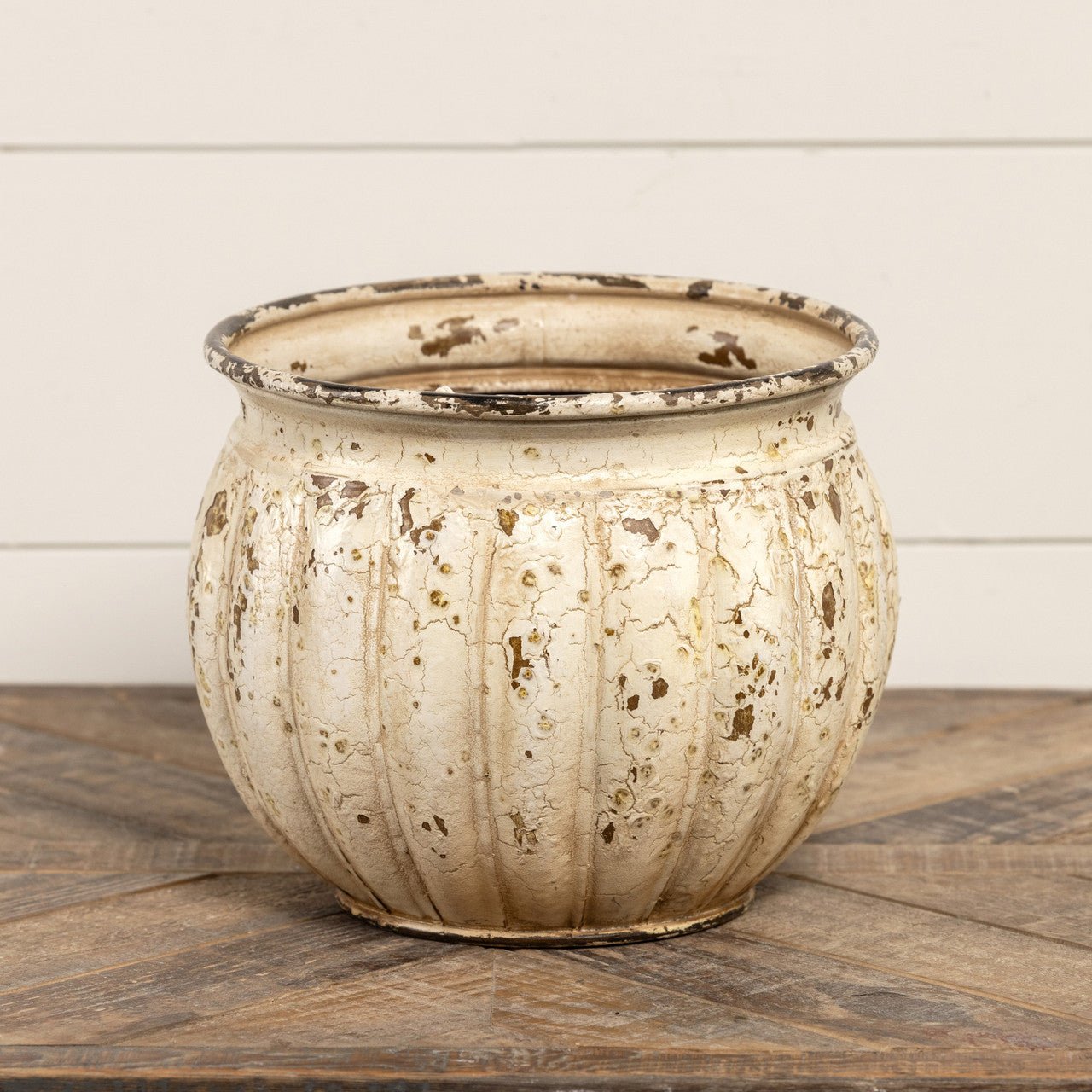 Bring the outdoors in with this beautifully aged white metal planter pot, featuring a heavily distressed and rusty finish, it is perfect for giving any room a touch of vintage charm.