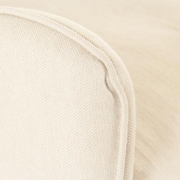 This simple yet beautiful sofa, featuring a soft cream color and delicately curved arms, is perfect for adding comfort and modern farmhouse charm to your home.