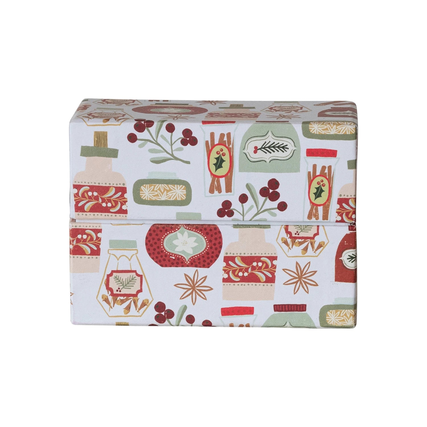 This printed paper recipe box, featuring a sweeet whimsical holiday print and 36 recipe cards, is perfect for adding a bit of whimsy with farmhouse charm to your holiday kitchen decor.