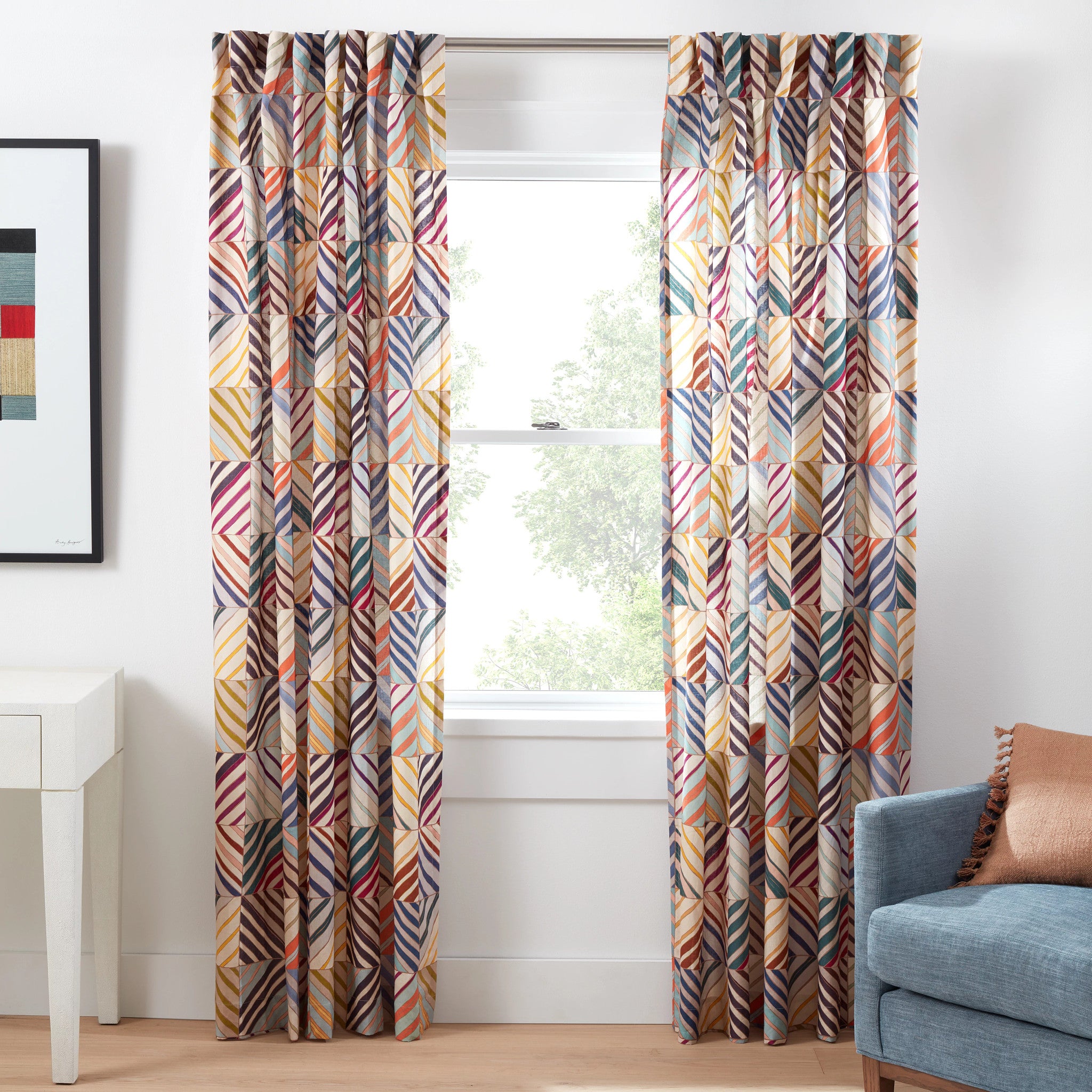 Make an impression with this 100% linen curtain that has a luxurious drape, soft feel, and colors that work season after season. Inspired by a one-of-a-kind work of art, it features multicolored stripes and a patchwork pattern. For a complete, pulled-together look, pair with matching shams and quilt.