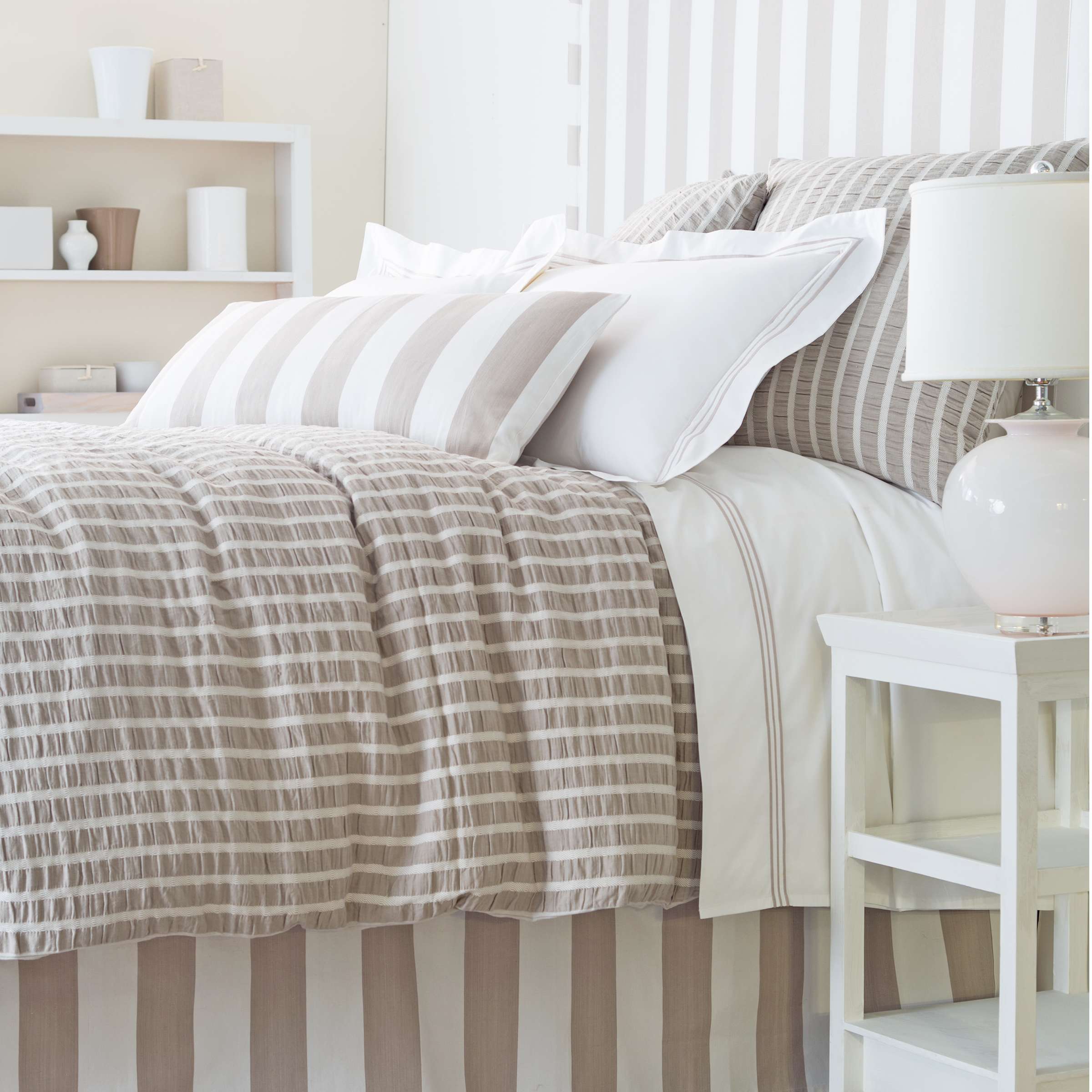 A simple, three-lined embroidery adds a touch of refinement to this classic white, 400 thread count cotton sham, perfect for adding a touch of sophistication to your modern farmhouse bedroom.