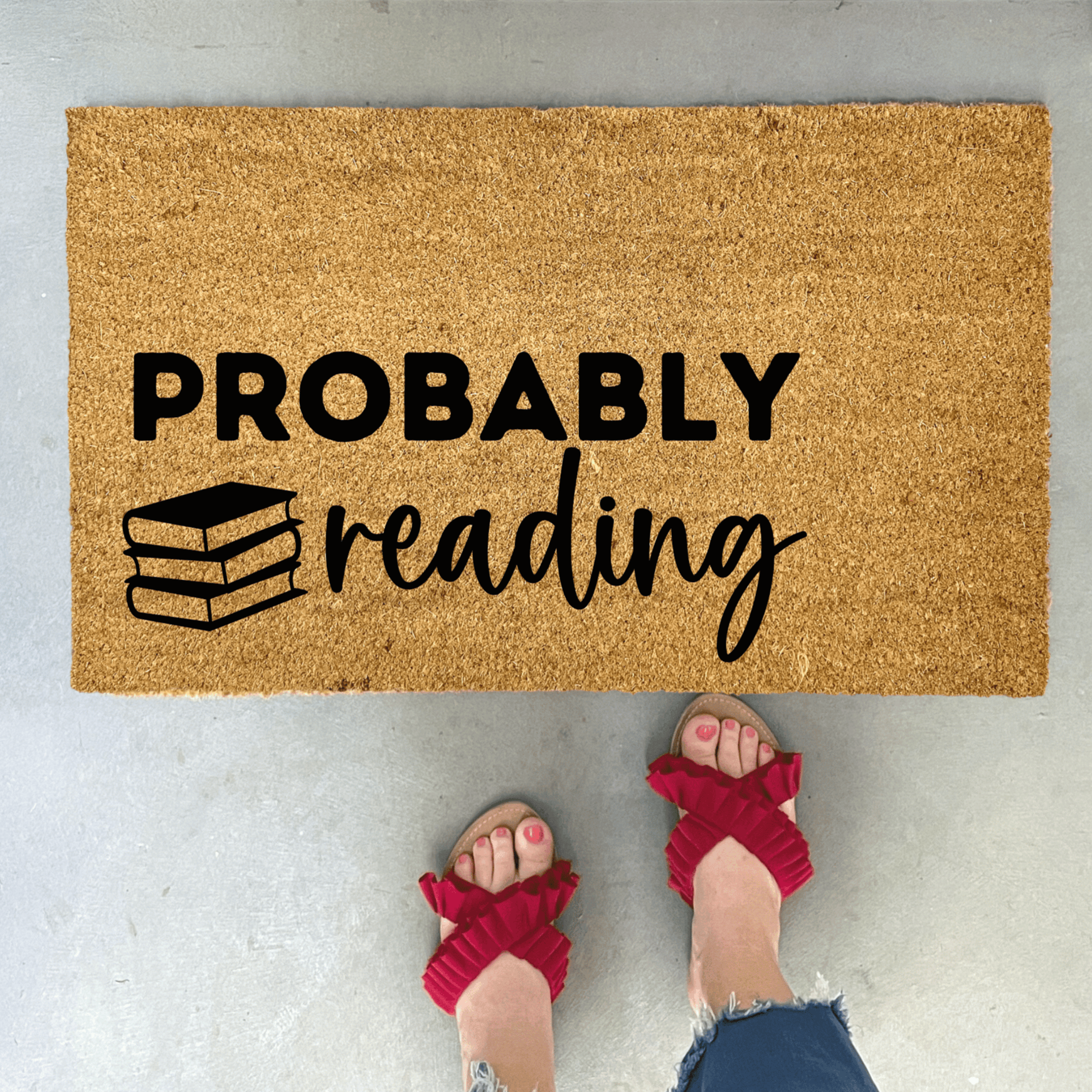 This hand-made Probably Reading Doormat is perfect for book-lovers everywhere! Show off your love of words with this whimsical doormat while letting your house guests know they've entered a true literati's home.