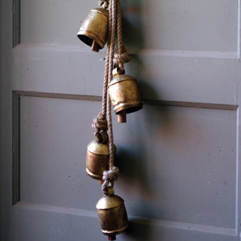 Deck your home this holiday season with a little vintage charm with these beautiful rustic iron bells, hung from a thick aged rope, they are sure to add a bit of rustic charm to your holiday decor.