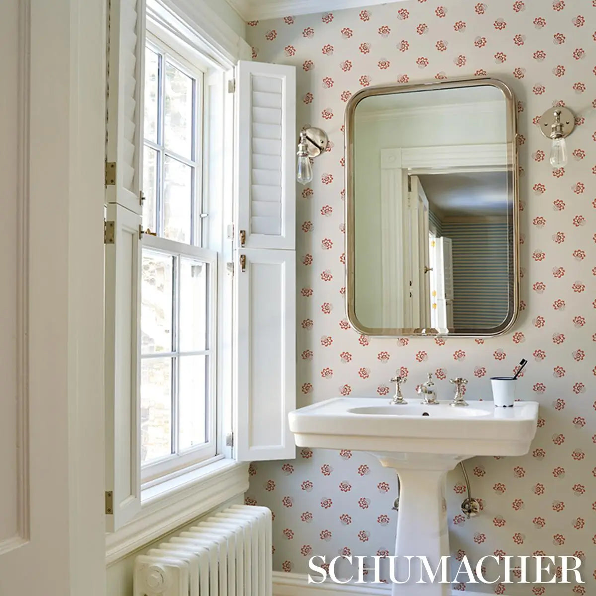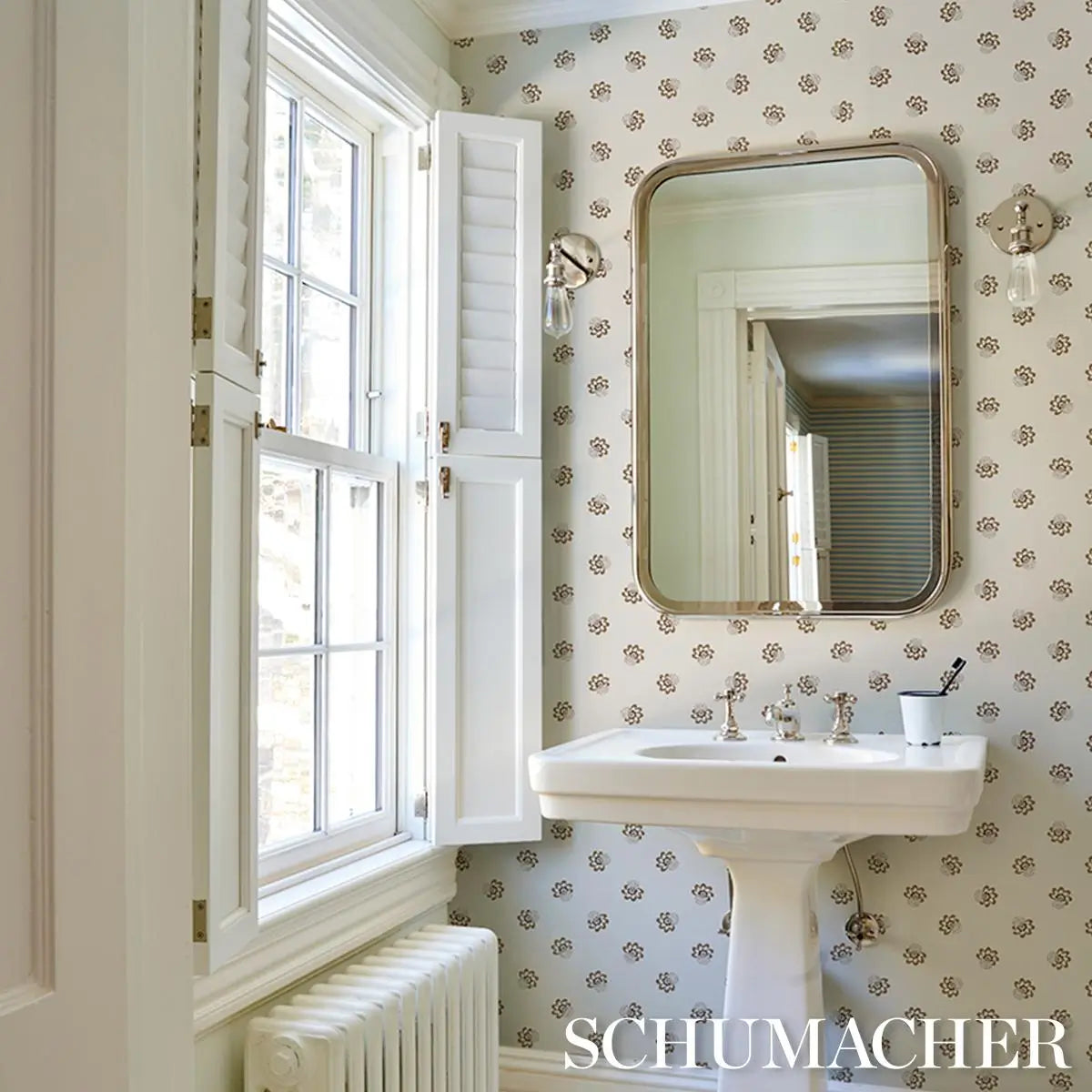 This airy tossed-flower pattern is gravure-printed on a flat ground so that its wonderful details can’t be missed. The perfect small-scale wallpaper, Auclair Floral is a simple, whimsical design that makes a lovely background for furniture and art.