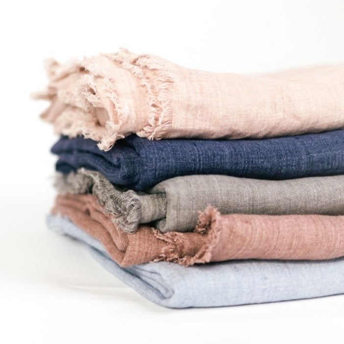 This beautifully versatile stone washed linen blanket is generously sized and is the perfect weight and softness for those quiet, cozy moments at home while the frayed edges add texture and depth to any sofa or bed.