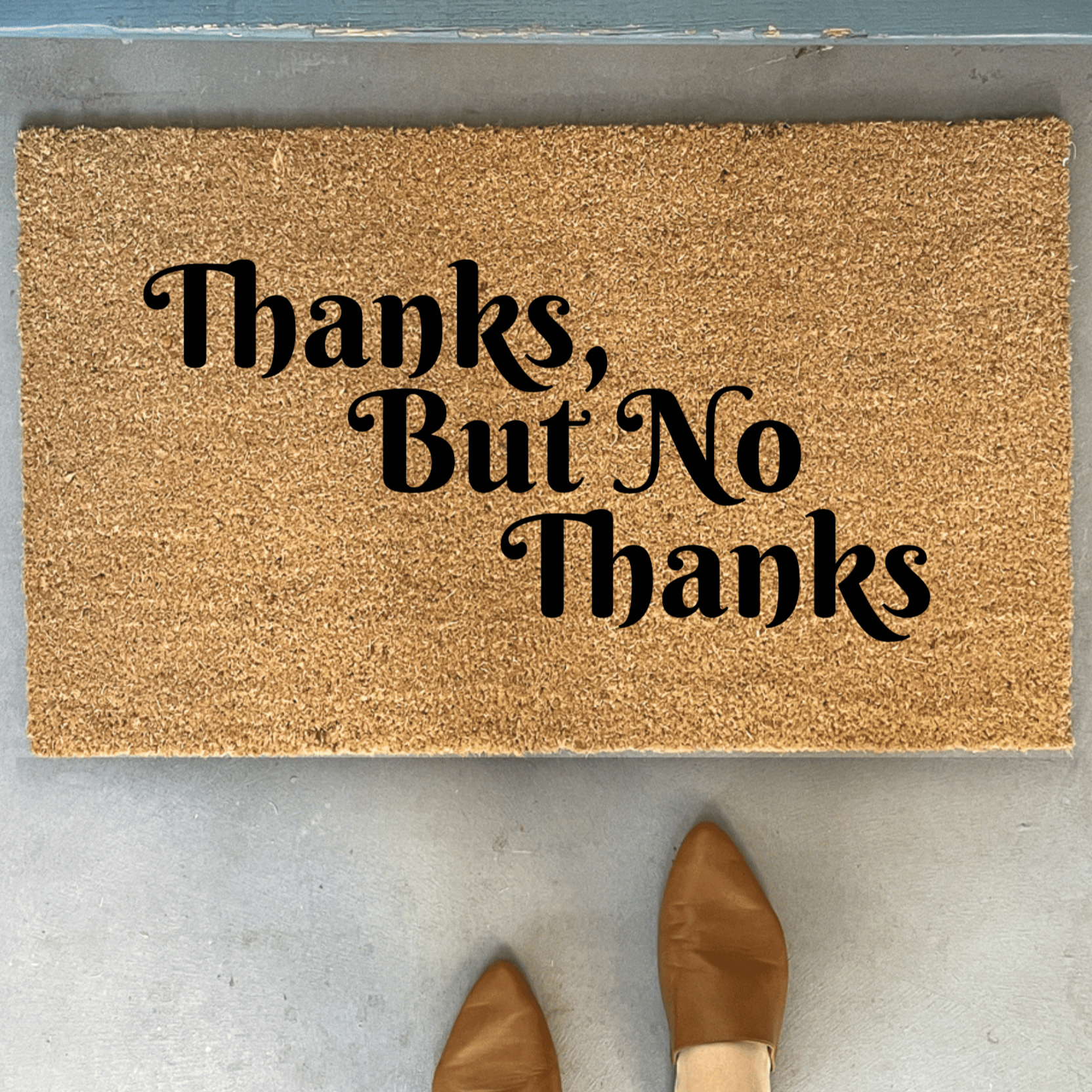 Whimsically welcome visitors to your home with the 'Thanks, But No Thanks' doormat, this fun and bold doormat will let everyone know that you appreciate their visit, but don't expect them to stay too long.