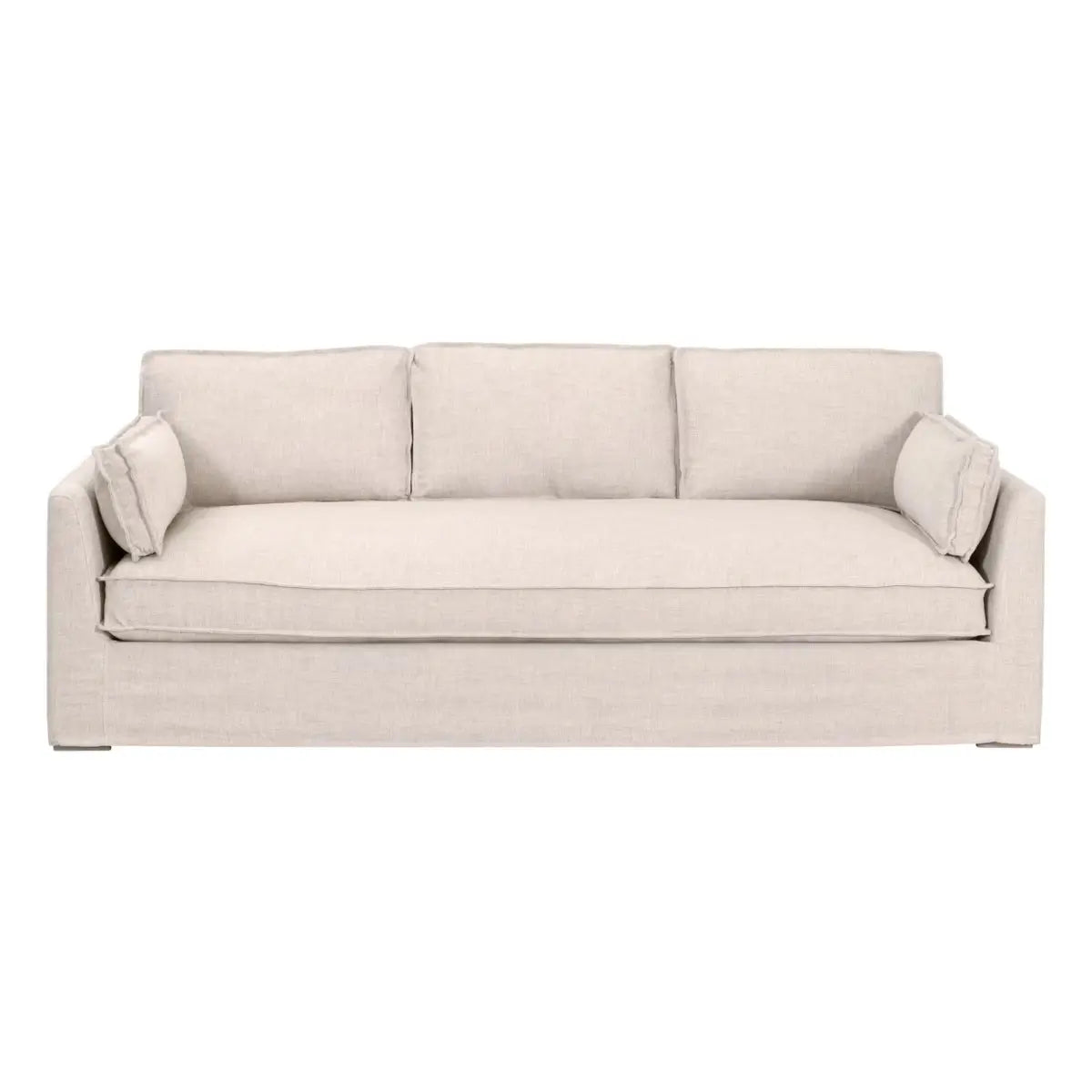 The Thea Outdoor Sofa features a sleek, tailored slipcover design with Performance Allerton Twine upholstery, offering both style and durability for outdoor living, featuring a generous 90" frame and gently tapered arms, this sofa creates an inviting silhouette and is perfect for adding comfort and sophistication to any outdoor space.