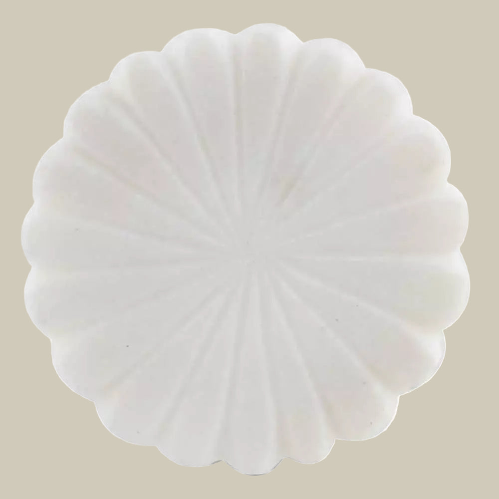 These whimsical white stone floral knobs, featuring a handmade style floral pattern in a white cut stone finish, are perfect for updating your dresser or cabinets with whimsy and vintage charm.