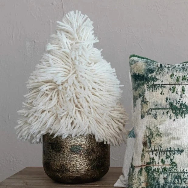 This unique tree shaped pillow, made from woven New Zealand wool shag in a beautiful cream color and shaped like a winter Christmas tree, is perfect for adding texture with a cozy farmhouse feel to your holiday decor this season.