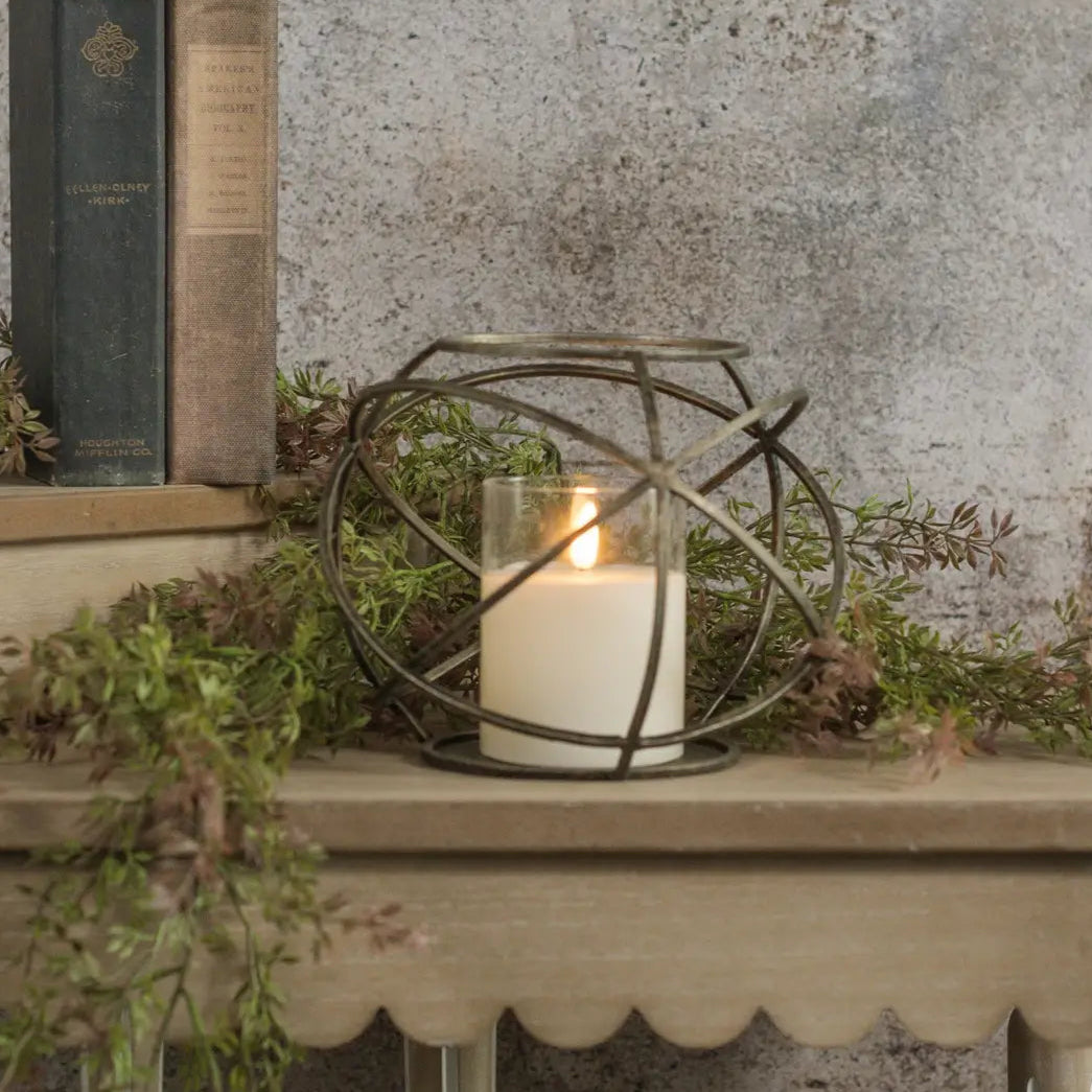 Red Metal Windowpane Lantern Set