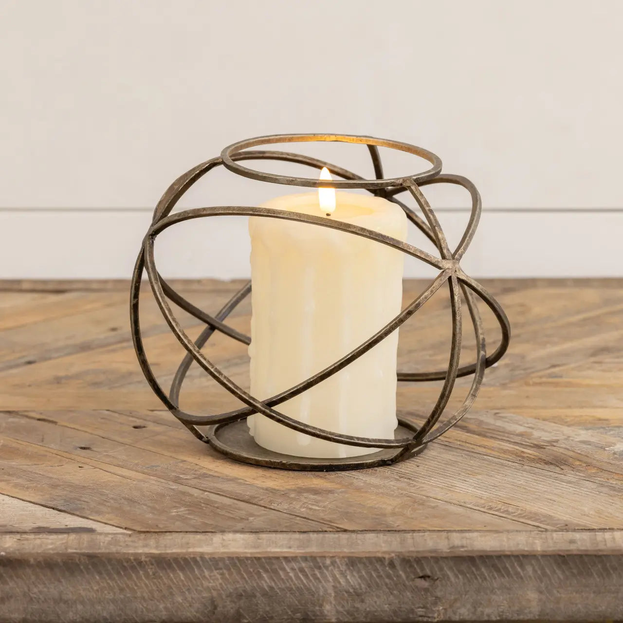 Antiqued Gold Cast Iron Flower Taper Holder