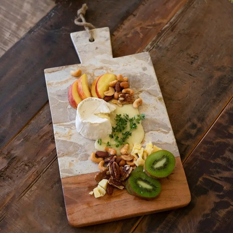 Wood and Marble Cutting Board with Handle