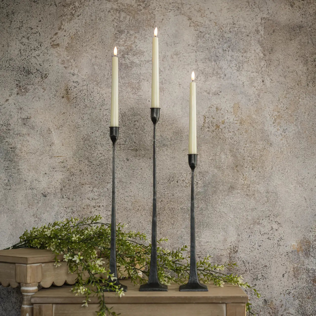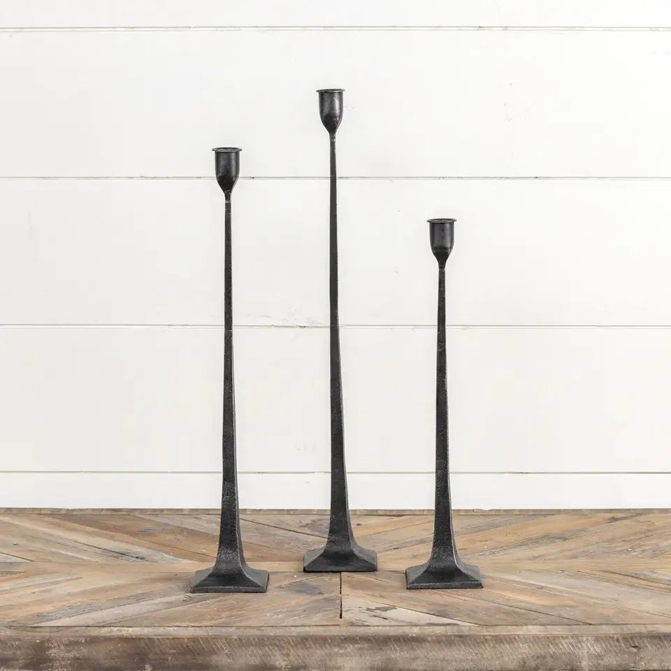 Antiqued Brass Trumpet Taper Candle Holder Set