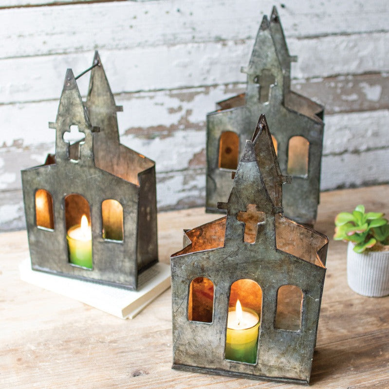 Red Metal Windowpane Lantern SetRed Metal Windowpane Lantern Set