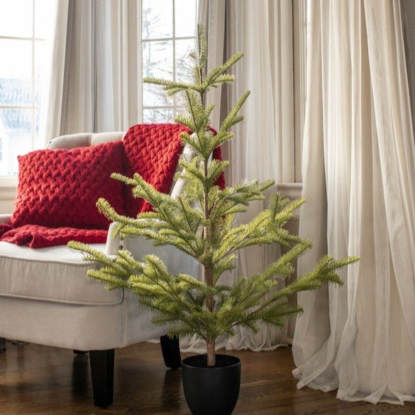 Cedar And Boxwood Wreath With Burgundy Ribbon Set
