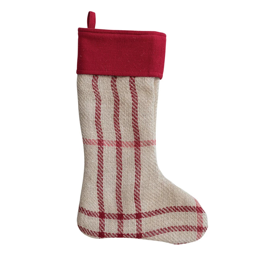 Flannel Stocking With Sherpa Cuff & Pom Poms