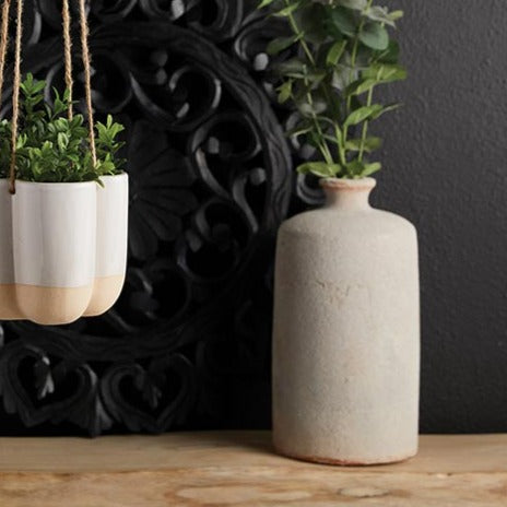 Cement & White Crackle Glazed Pottery Urn