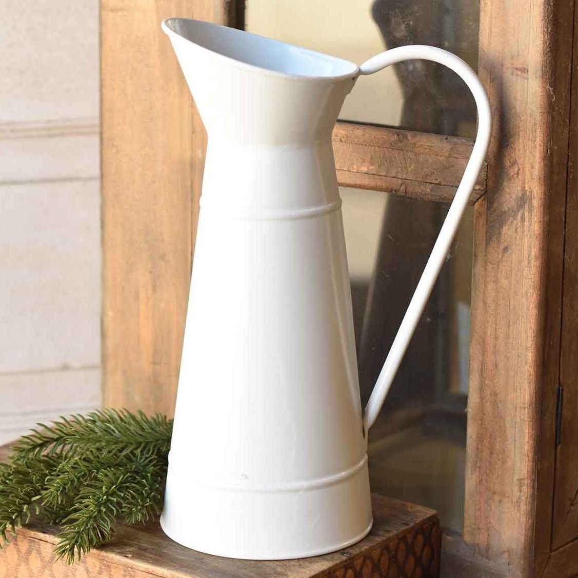 Antiqued White Stoneware Pitcher