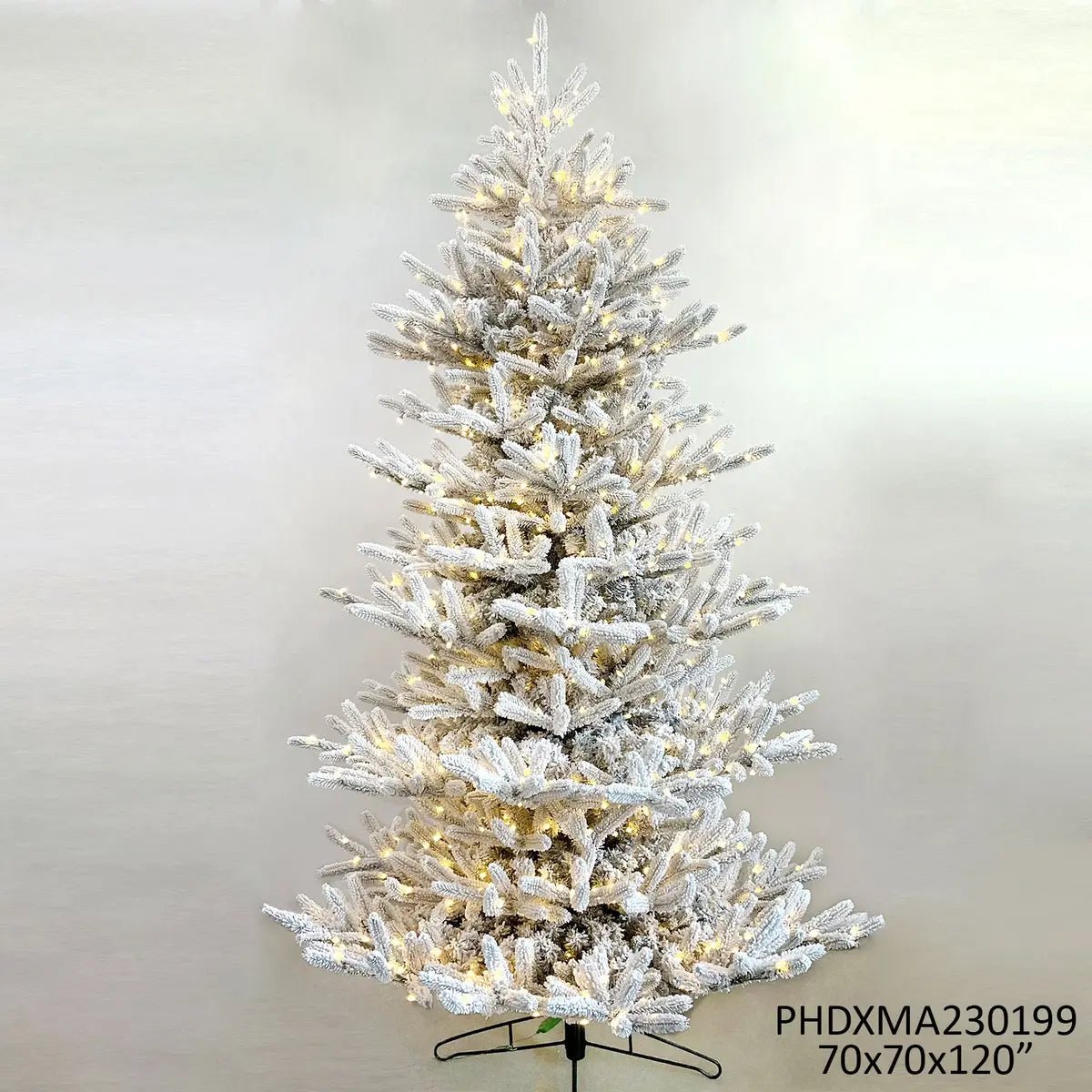 This gorgeous 10' pre-lit Flocked Balsam Fir Tree, featuring 1300 clear LED lights and 2254 tip count, it sure to make a statement in your family's home year after year.