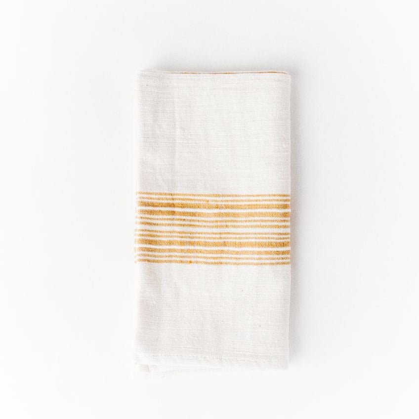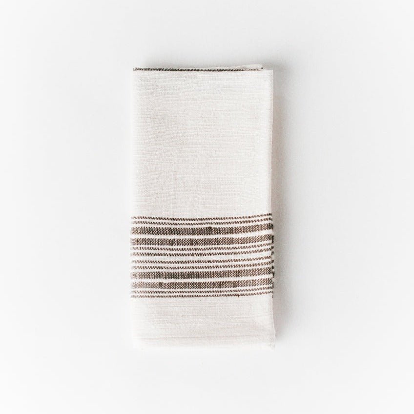 Our Aden Dinner Napkins are the most versatile cloth napkins ever, featuring a striped design that gives a new look with each different fold, these exquisitely hand-spun cotton pieces can be dressed up or down for any formal or casual table setting.