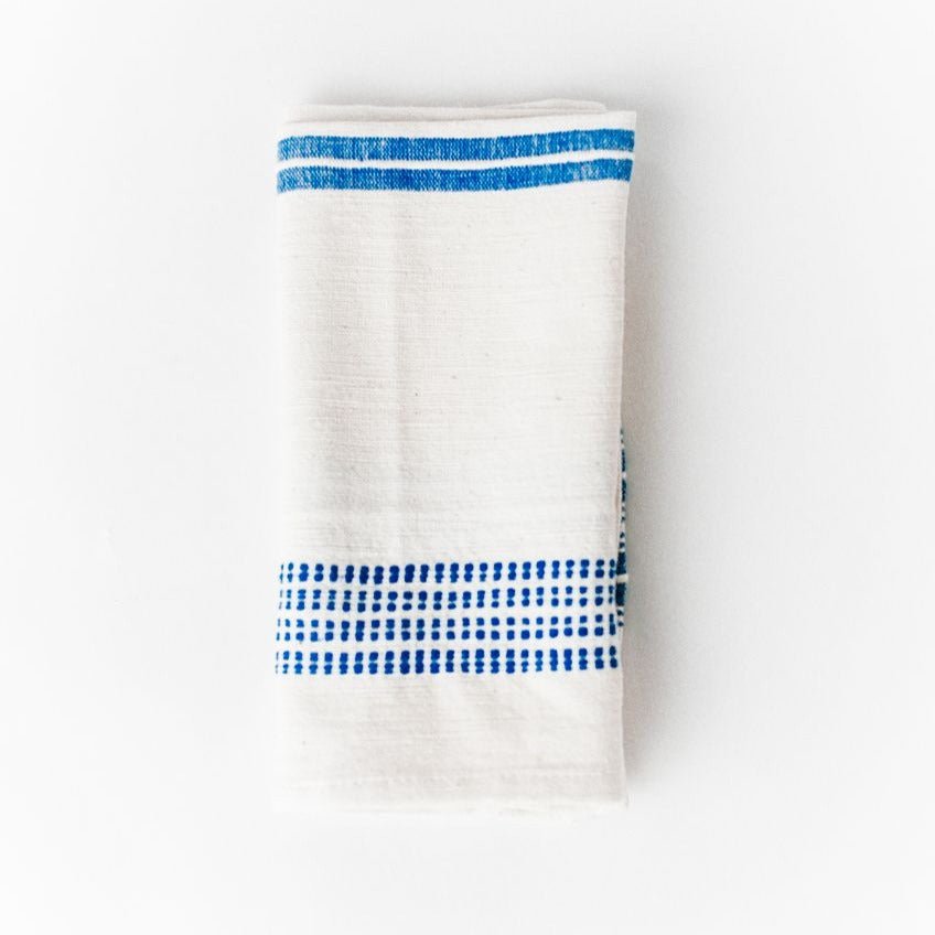 Each napkin is hand spun & woven by a small group of talented Ethiopian artisans. Dyed with AZO-free color on 100% locally sourced eco-friendly cotton. Thanks to the nature of hand-spun cotton, these napkins will continue to soften and become more absorbent with each use.
