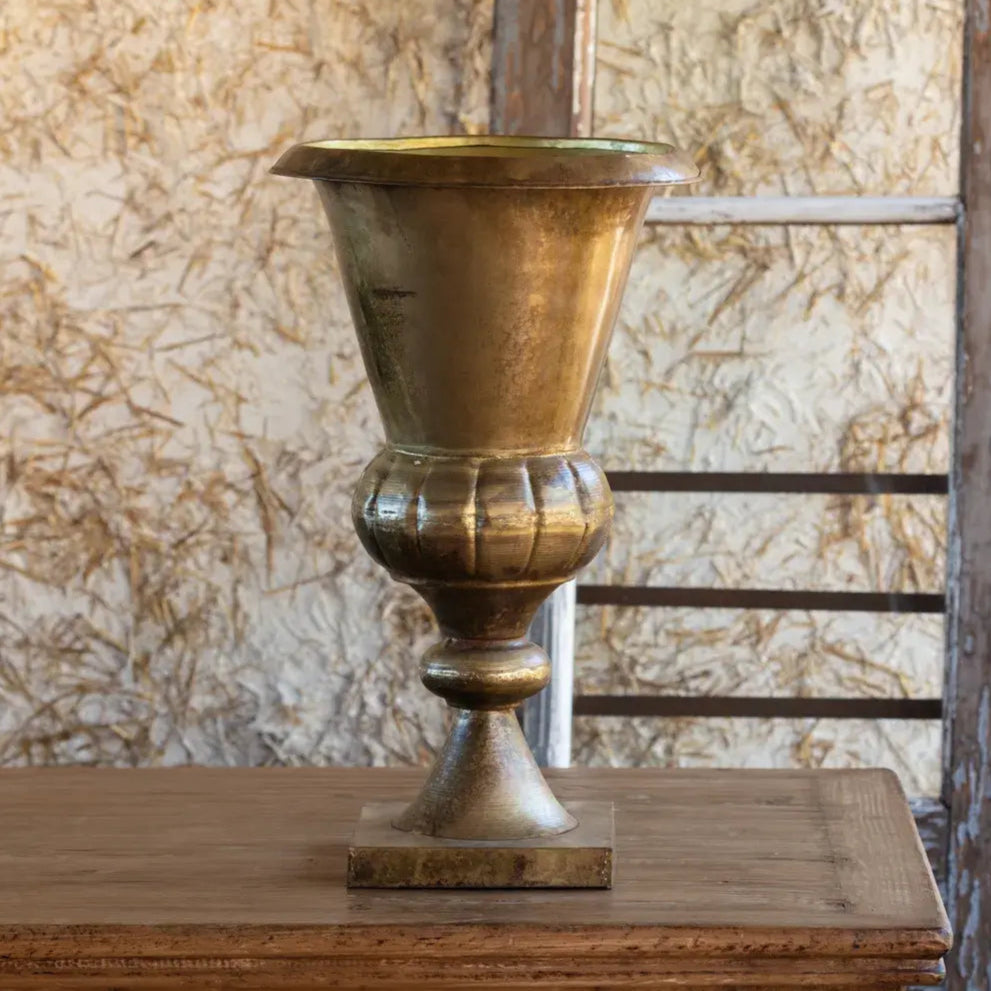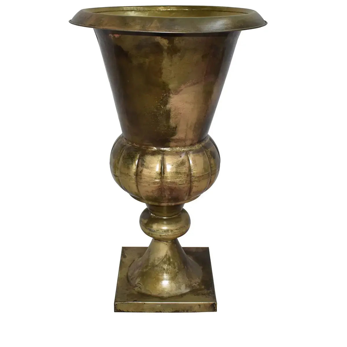Featuring an antiqued gold metal finish and elegant design, these grand metal urns are sure to add beauty and charm to any space.