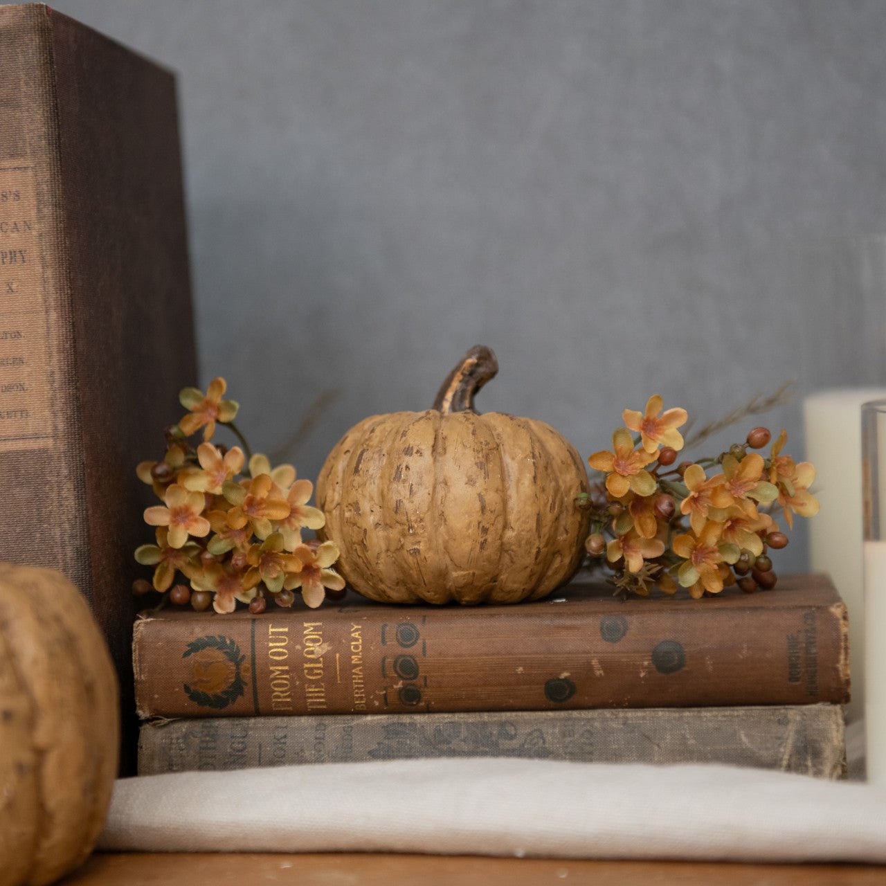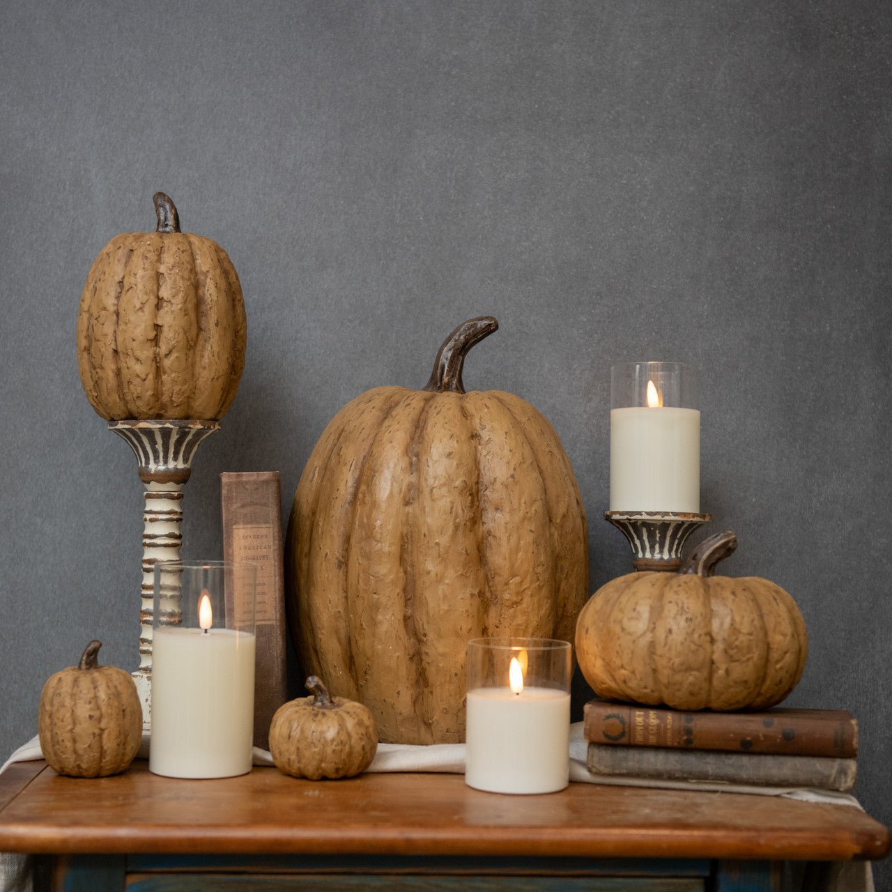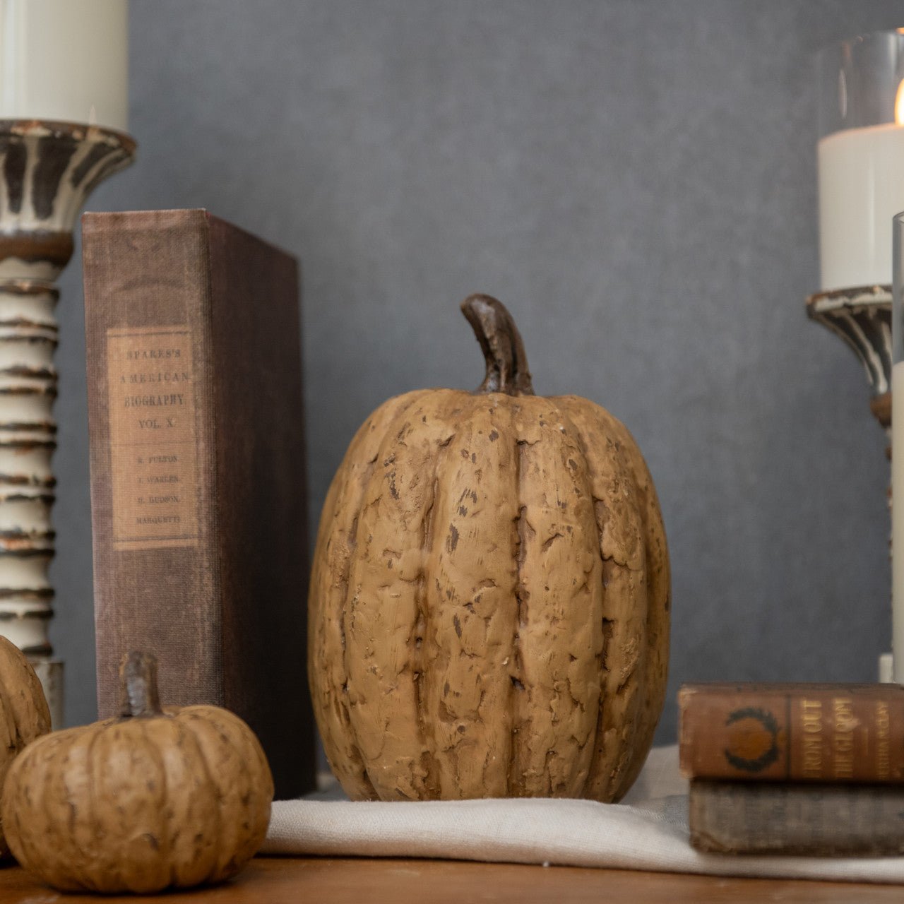 These whimsical Mache Pumpkins, featuring a beautiful realistic finish in a neutral beige color, are perfect for adding beauty and texture with a farmhouse feel to your Fall decor this season.