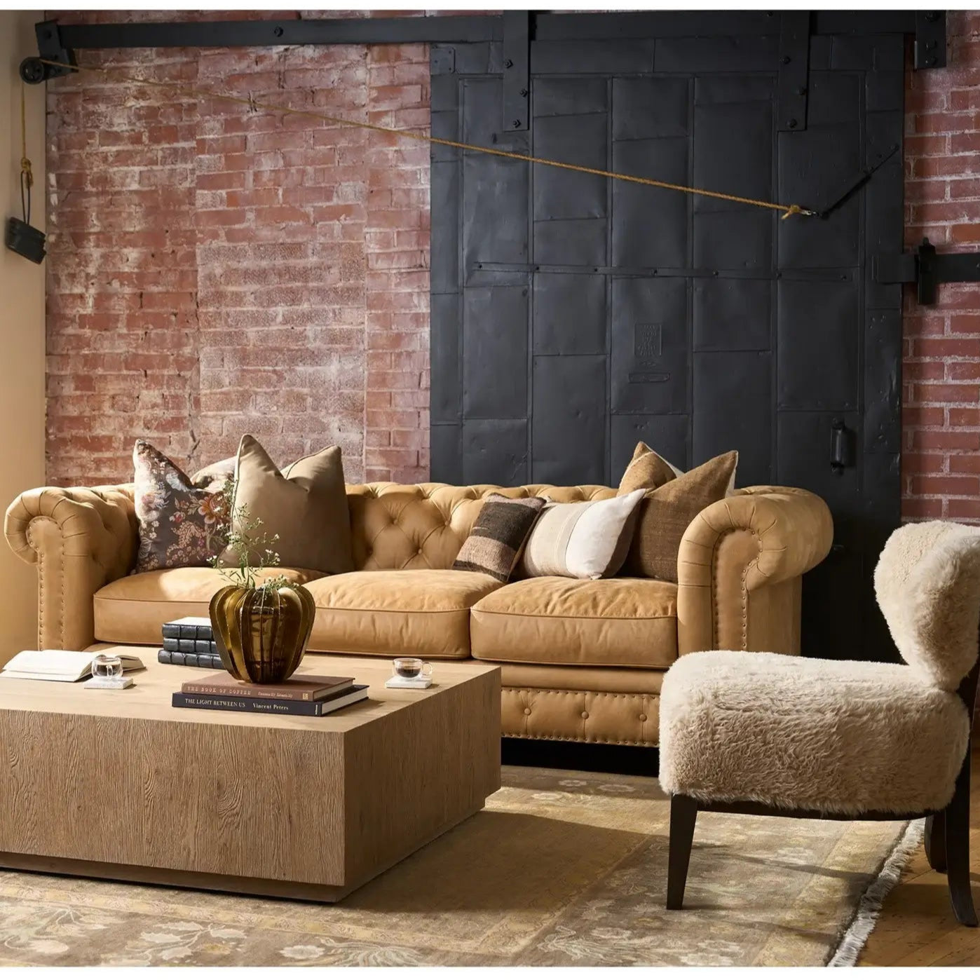 This Chesterfield style sofa exudes timeless elegance with its deep button tufting, rolled arms, and warm camel colored leather, classic yet cozy, it’s a statement piece that adds richness and charm to any living space.