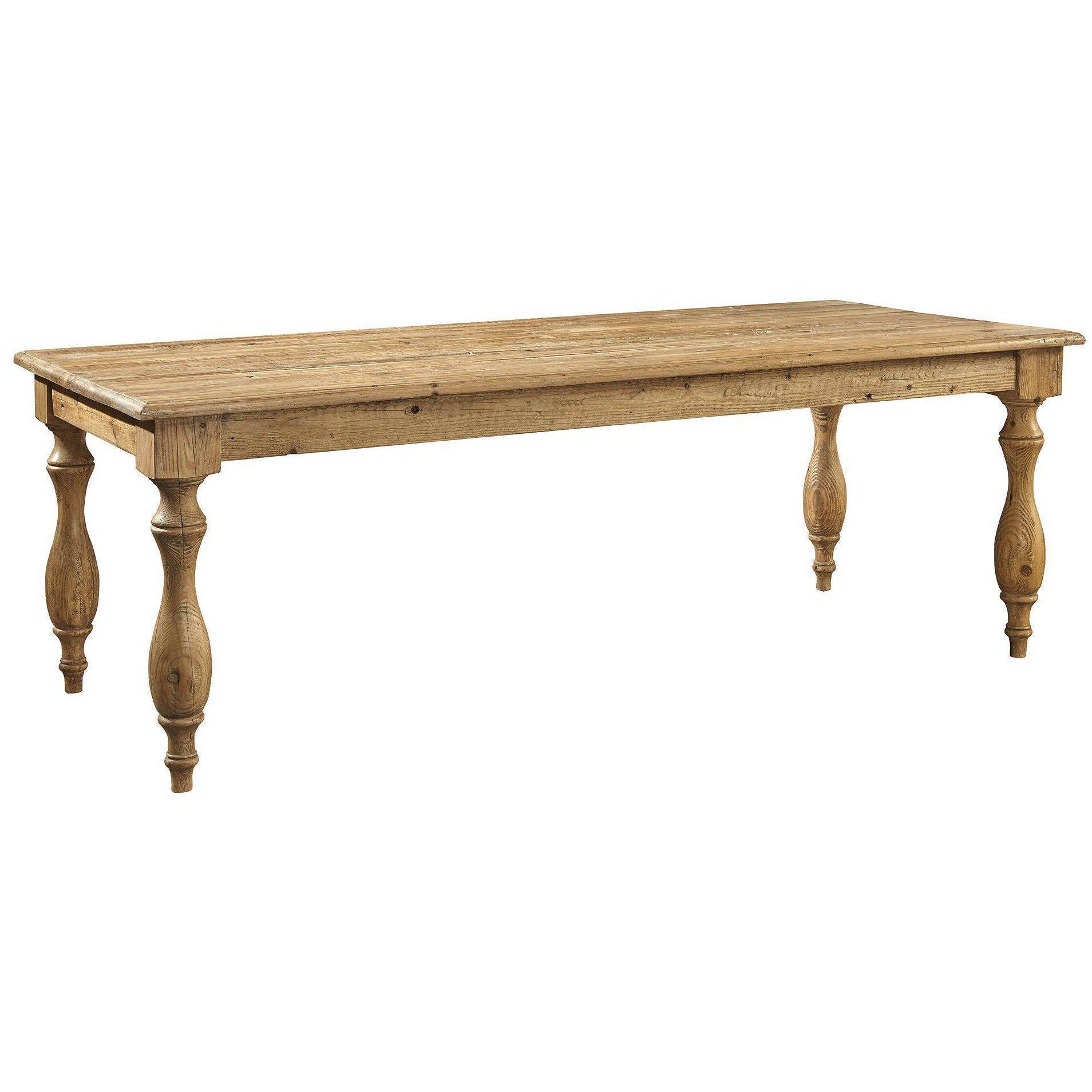 This beautiful farmhouse dining table, featuring a natural distressed finish made from reclaimed pine, boasts four large baluster table legs giving it a unique look and perfect for large gatherings with family and friends.
