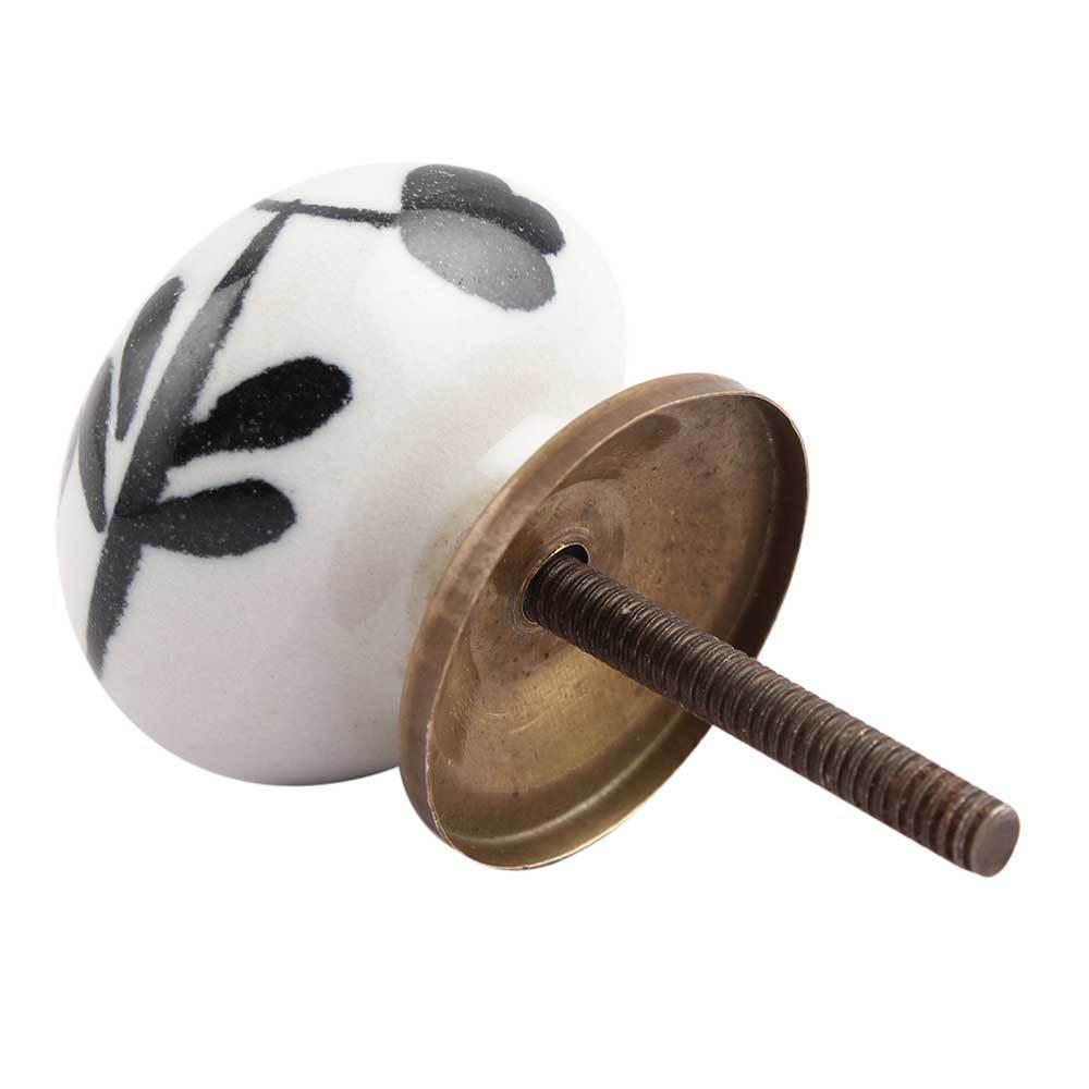 Our black & white floral ceramic knobs, each finished with antiqued brass hardware, are perfect for updating your dressers and cabinets with a touch of vintage charm.