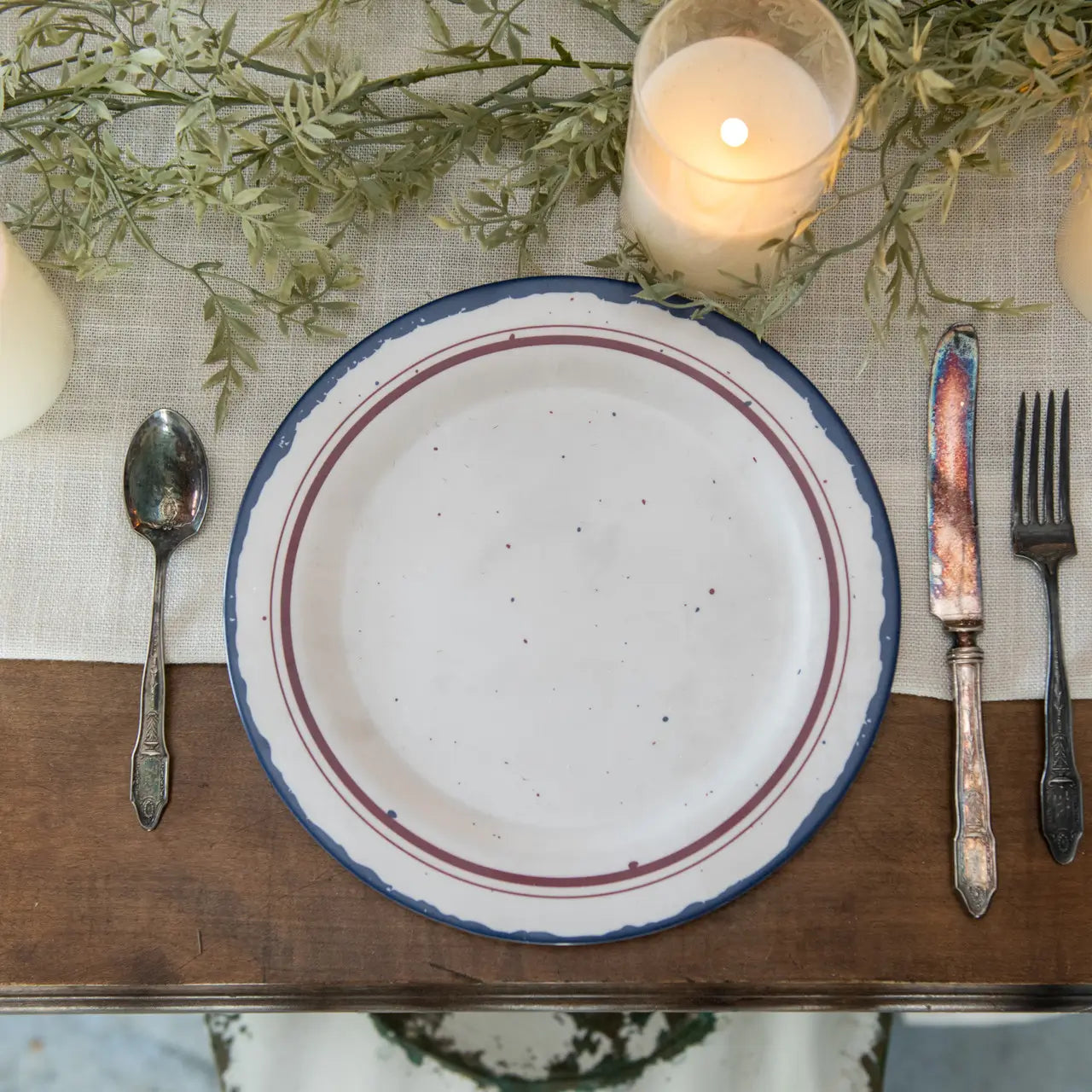 These beautifully distressed Red, White and Blue melamine plates are perfect for adding a patriotic presence to your table setting while adding simple farmhouse style.