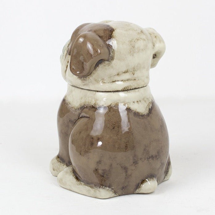 This adorable bulldog ceramic canister, featuring a glazed painted finish, is perfect for adding a touch of whimsy while storing dog treats or household items out of sight.