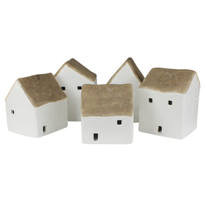 This sweet ceramic cottages set, featuring five free form ceramic cottages with each one organic looking and unique, are perfect for adding a beautiful farmhouse feel to any table centerpiece or mantel display.