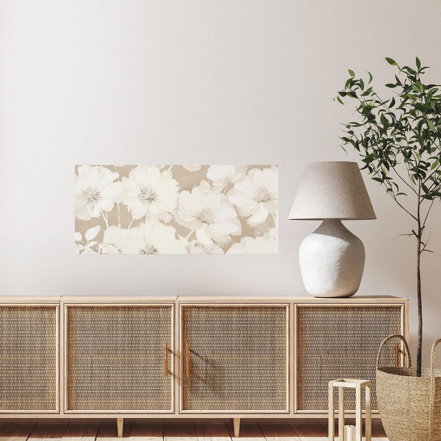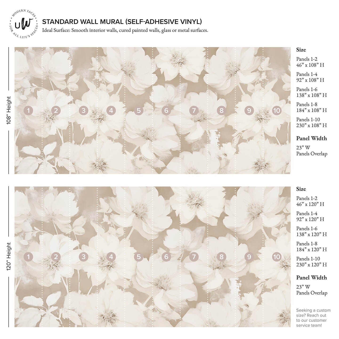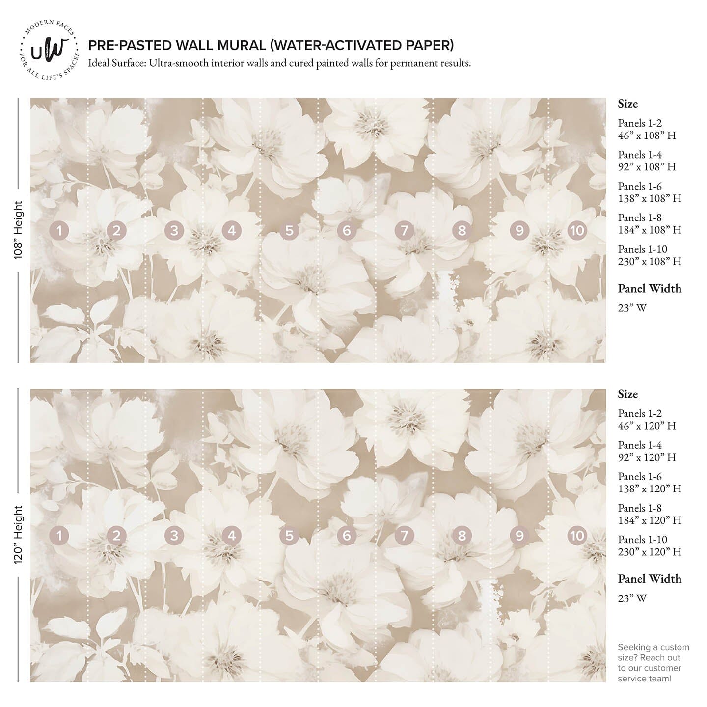 Our Chantilly Blossoms Wall Mural is perfect for adding a touch of elegance and grace to your home, with delicate stemmed flowers in a mesmerizing combination of white and tan, this mural is bound to make a statement in any room.