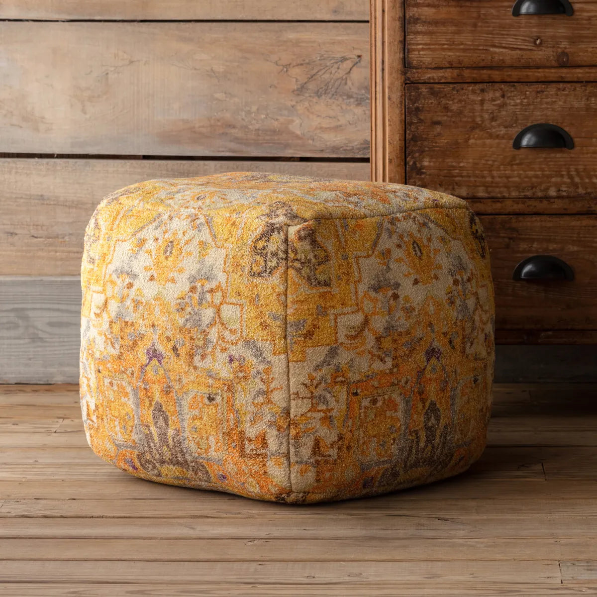 Indulge in luxury with the Charleston Upholstered Bouffer, this classic ottoman boasts a sophisticated square design in rich golds, tans and creams and is expertly crafted to emulate a salvaged oriental rug, perfect for extra seating or to rest your feet at the end of a long day.