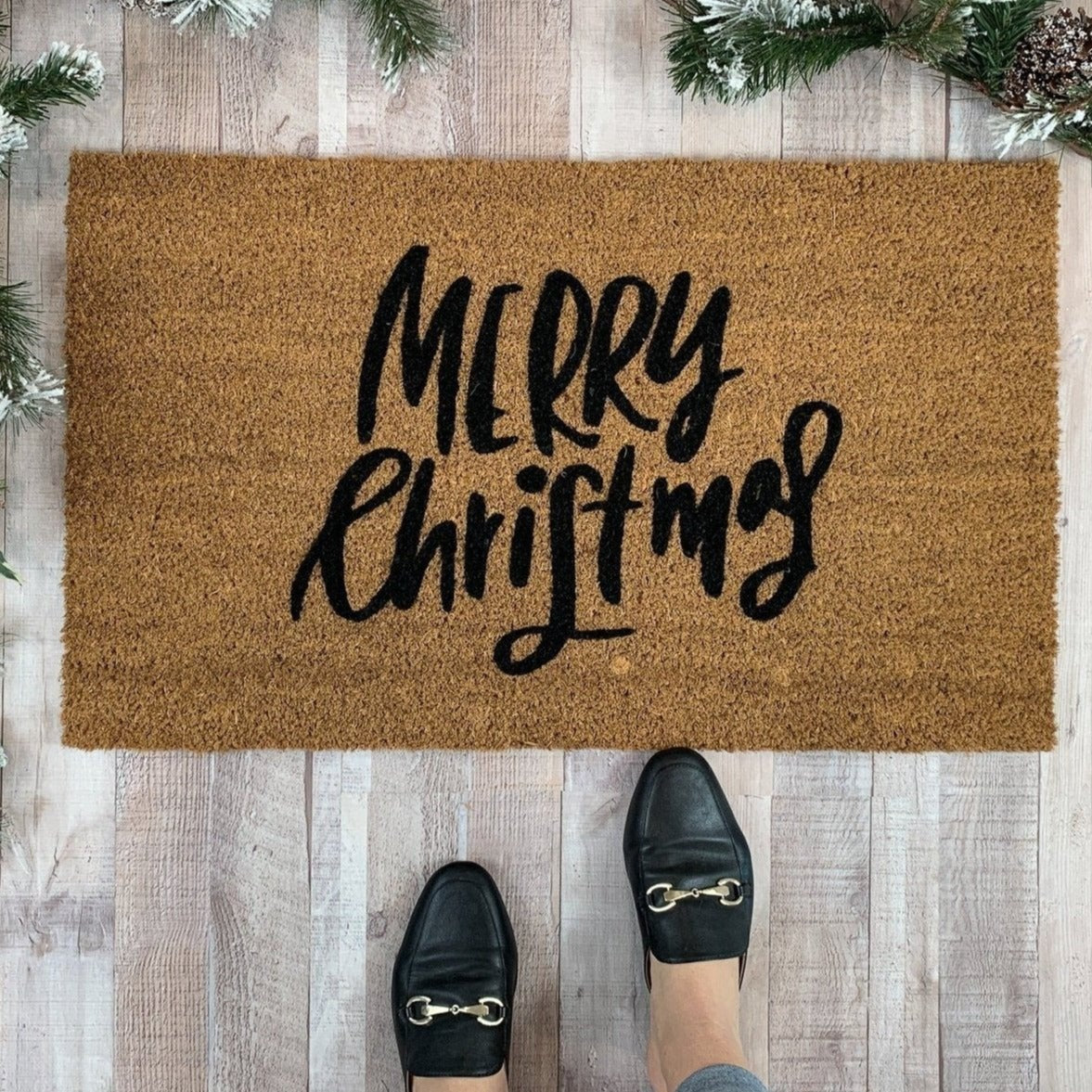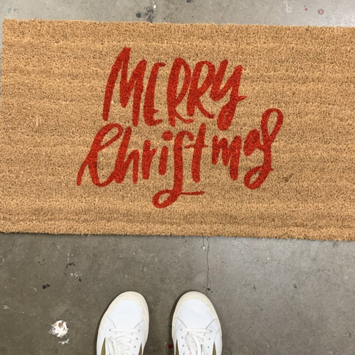 Welcome guests this holiday season with our simple yet festive Merry Christmas doormat, made by hand featuring the words Merry Christmas in black or red script, this doormat is sure to add a little holiday cheer without sacrificing functionality this Christmas season.