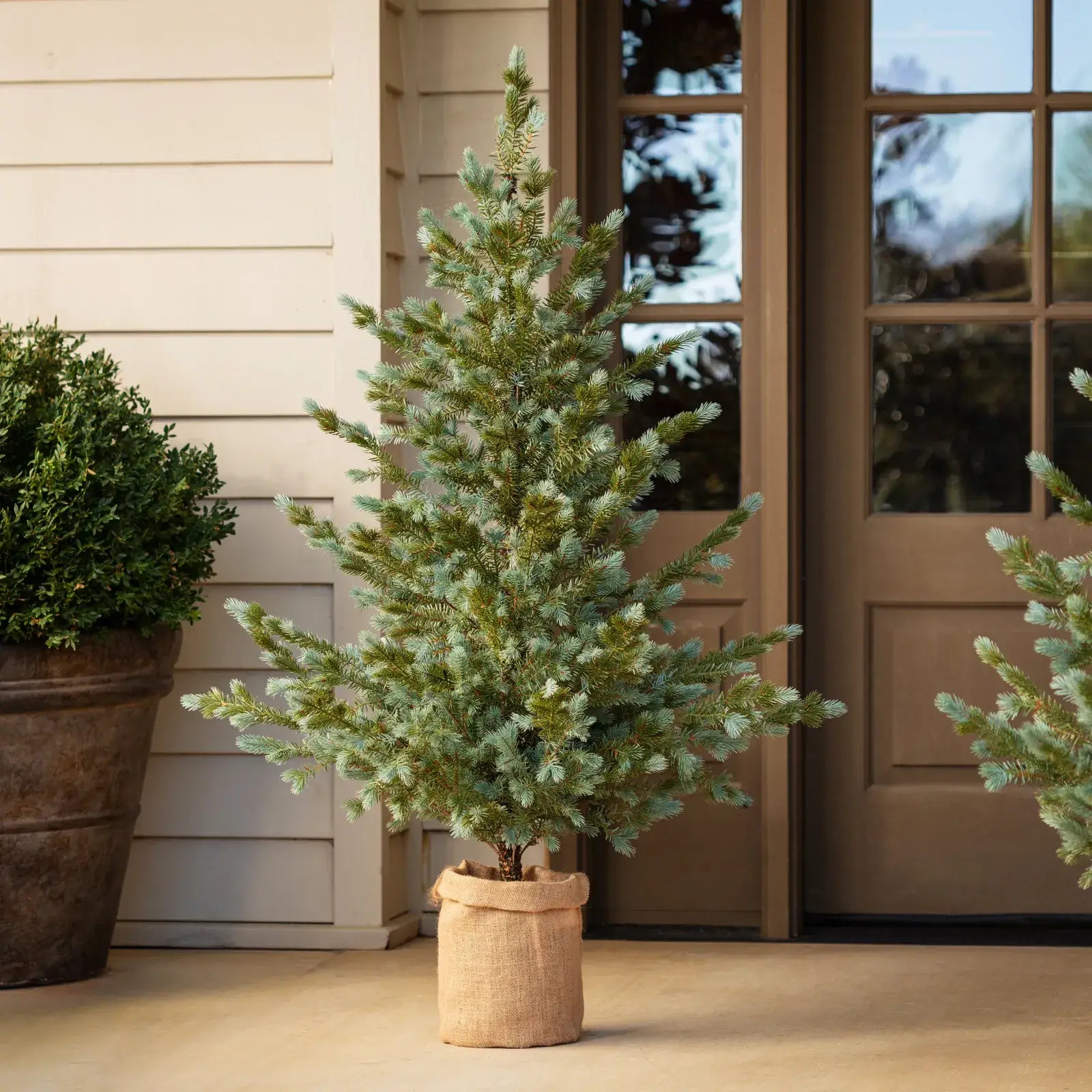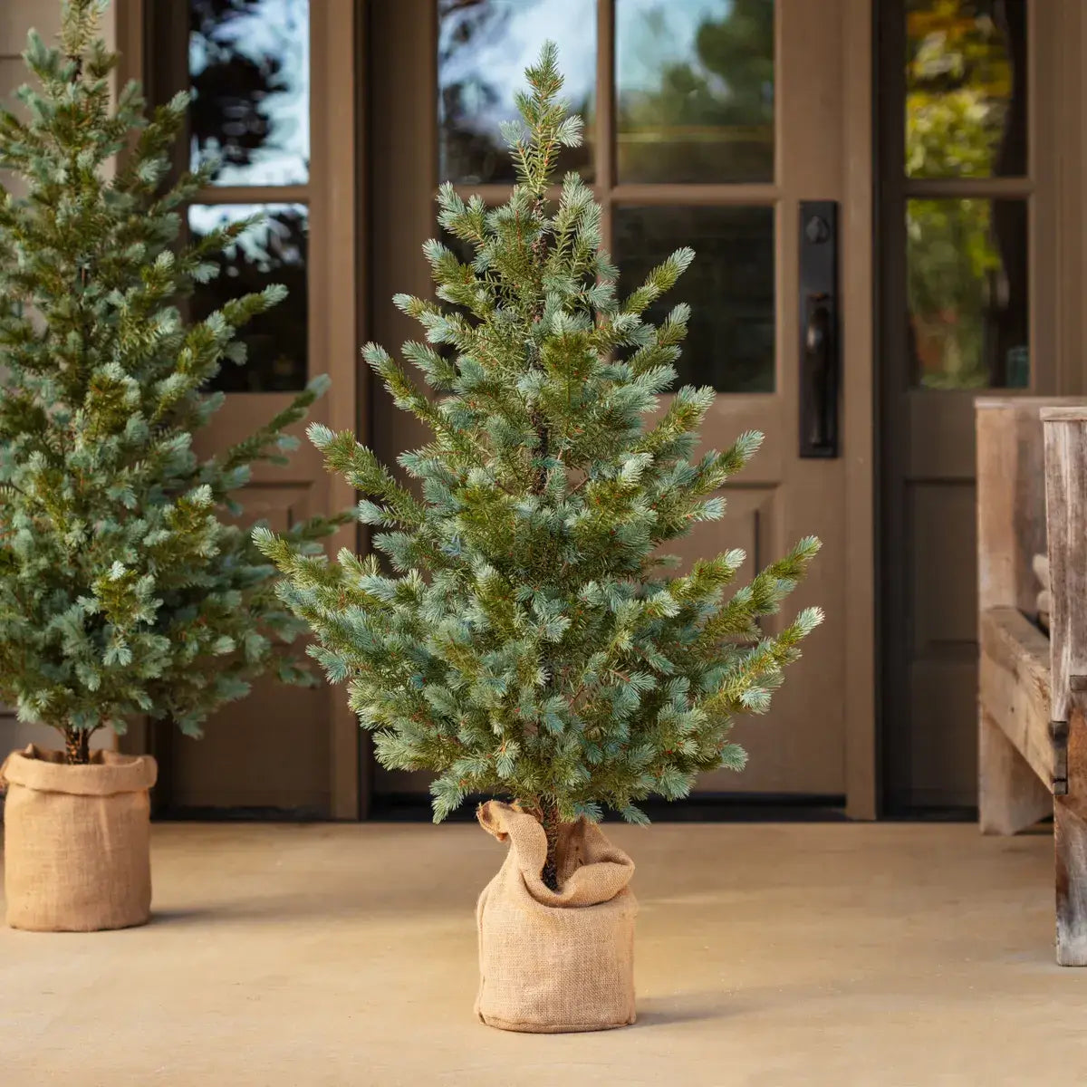 Bring a touch of rustic charm to your holiday decor with our Colorado Blue Spruce tree, positioned in a weighted burlap bag, it gives a natural and realistic look to your space and is perfect for adding greenery with a farmhouse feel to your home for the holidays.