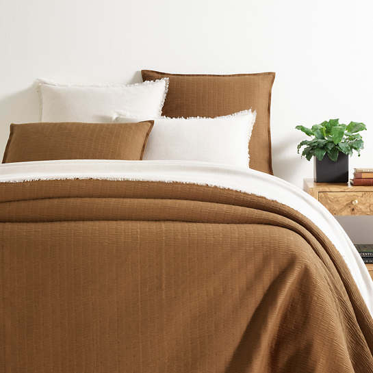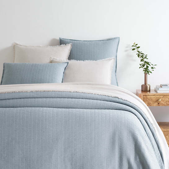 With its tempting texture and sensuous feel, the rhythmical, irregular design of this cotton matelassé coverlet is meticulously woven on jacquard looms and is sure to become an everyday essential as a lightweight cotton, year-round bedding layer.