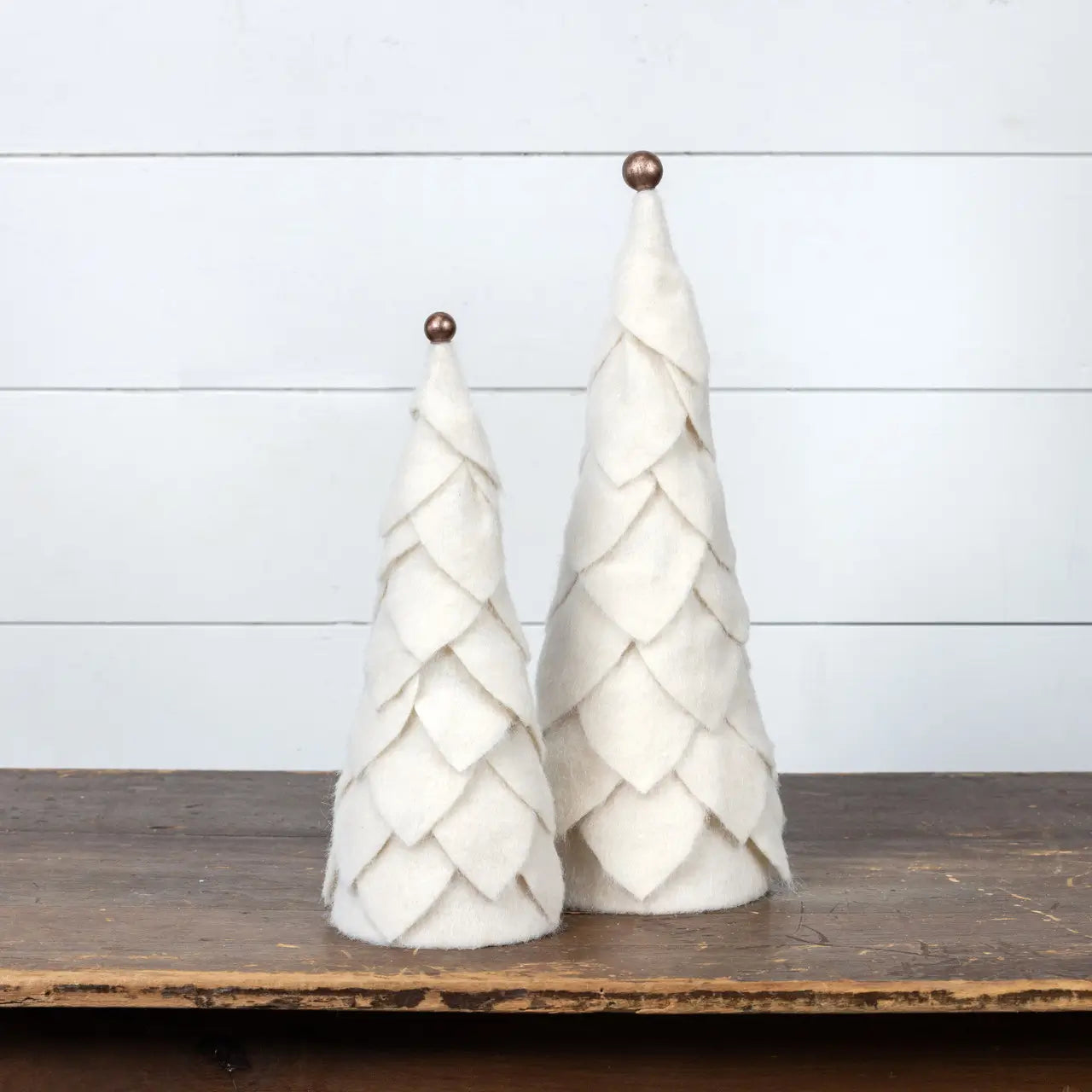 Add a soft, cozy touch to your holiday shelves with these cream felt trees, their scalloped layers and cottage inspired charm make them perfect on their own or grouped together.