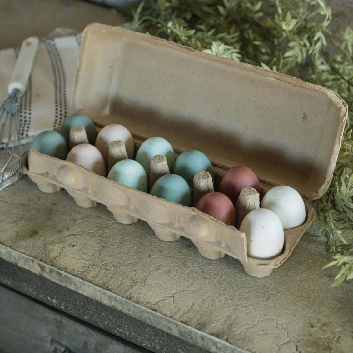 Add a little whimsy and farmhouse charm to your decor this Spring with these sweet little wooden painted eggs, featuring an egg carton to display, they make a beautiful accent for any Easter table setting.
