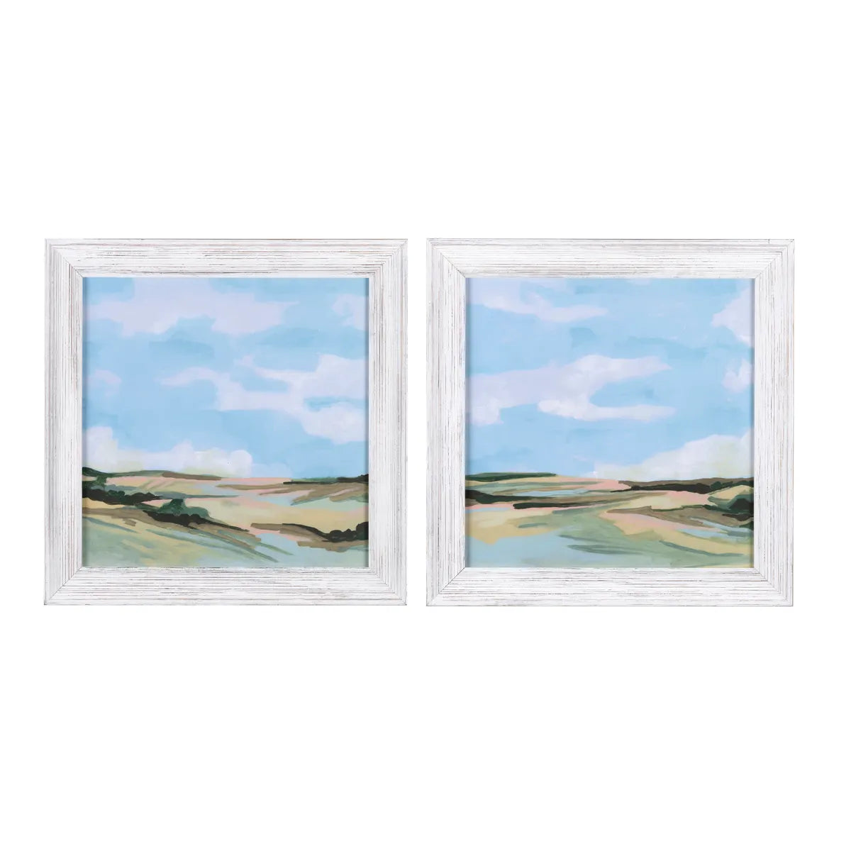 Indulge in the coastal charm of our Estuary Framed Prints Set, these soft pastel colors evoke the peacefulness of a coastal cottage, bringing a touch of tranquility and elegance to your home.
