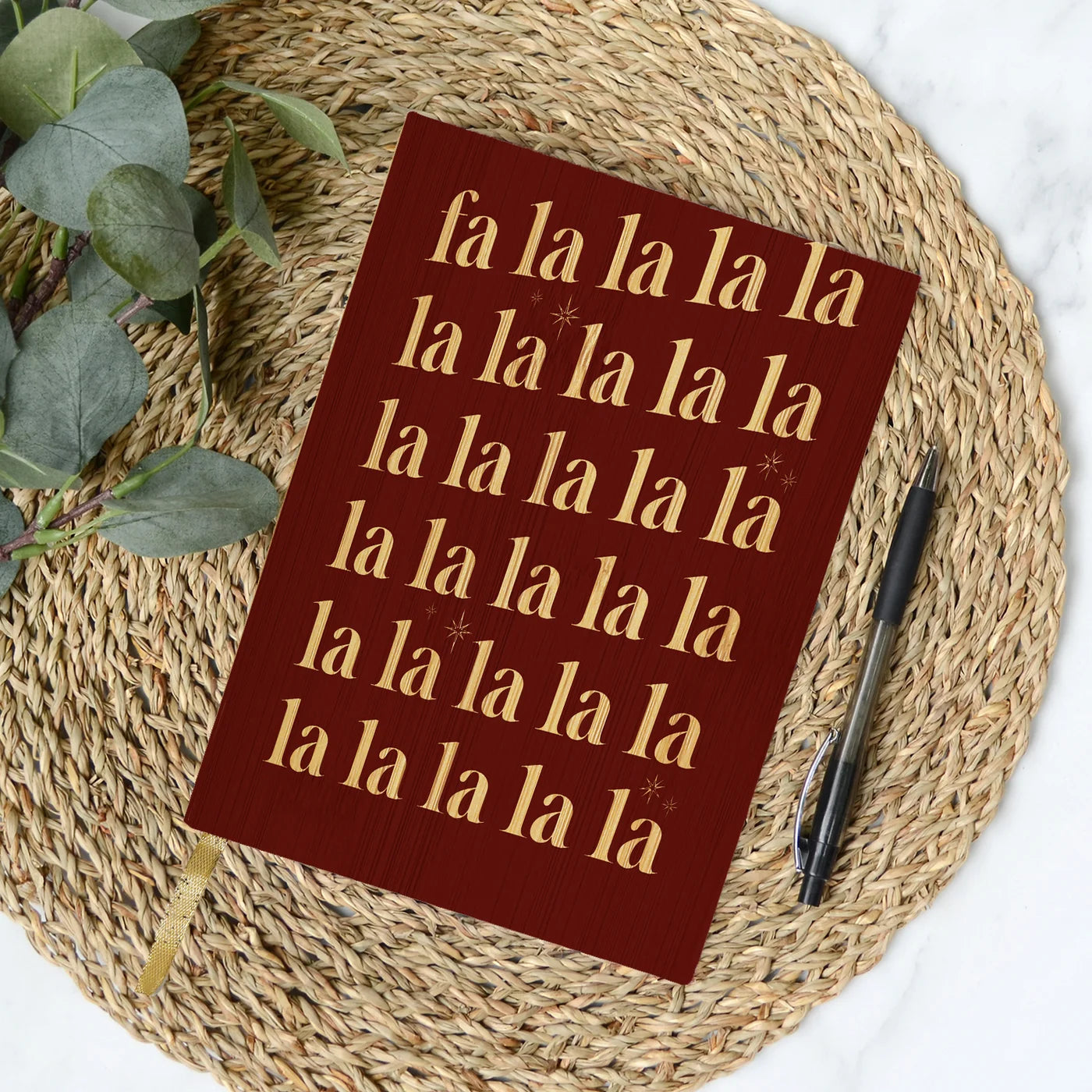 Add a touch of festive cheer to your writing with our Fa La La La Stars Journal, the gold "Fa La La" text against a red background will surely brighten up your day, while the ribbon marker keeps your place, perfect for keeping your thoughts organized during the holiday season.