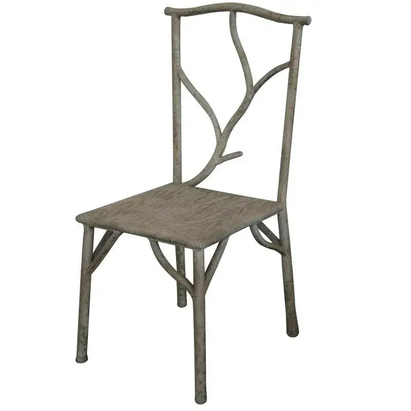 Get the rustic look and feel of wood without the maintenance with our Faux Bois Side Chair, made using the French "false wood" technique with cement and metal, this chair is perfect for indoor or outdoor use in any cottage or farmhouse style setting.