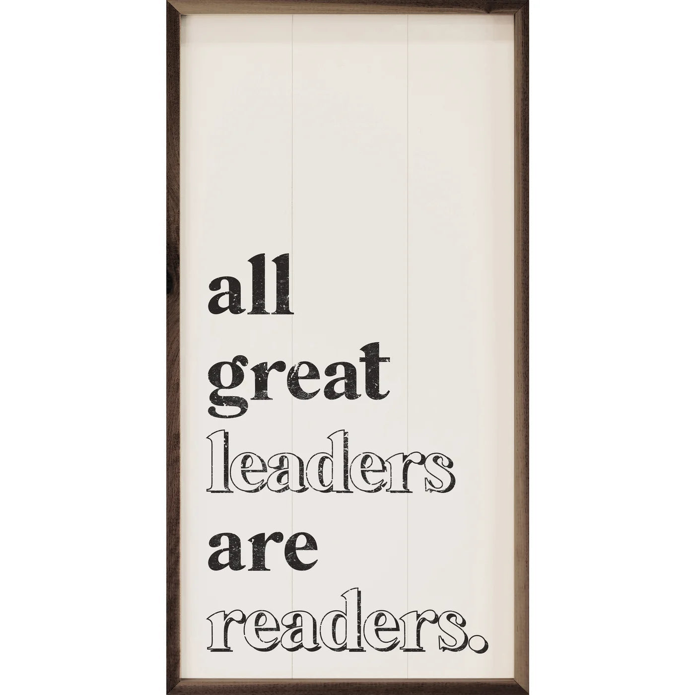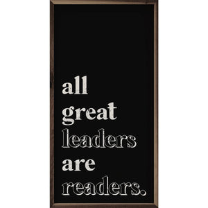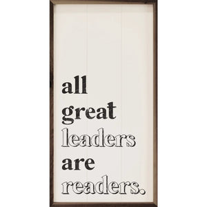 This vintage style wood print, featuring a walnut wood frame and the words "All great leaders are readers." whimsically printed on a black or white background, is sure to provide inspiration and farmhouse charm to any space.