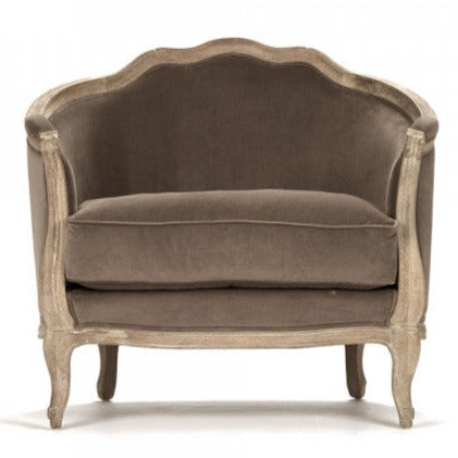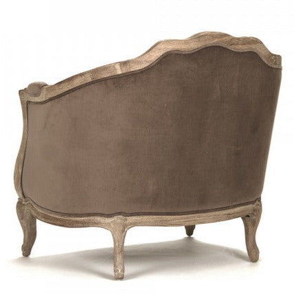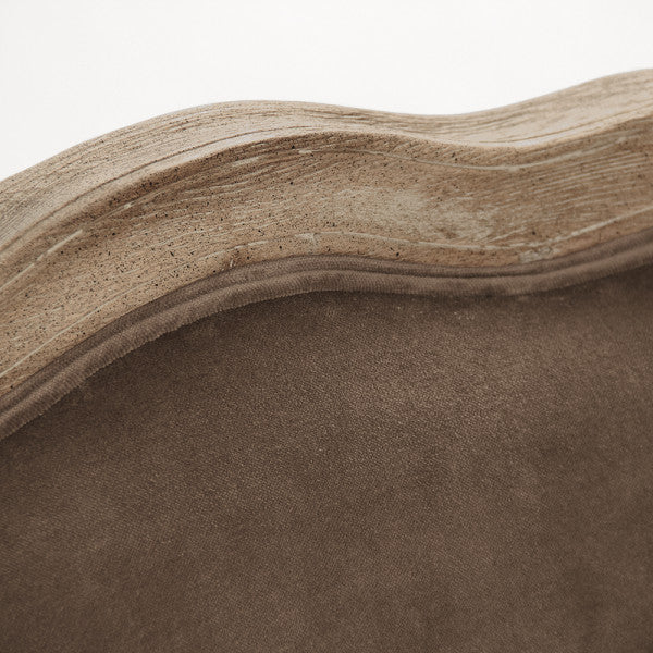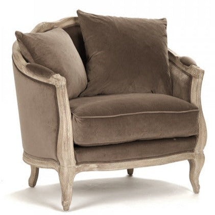 The Maison Velvet Love Chair is sure to add an elegant farmhouse feel to any space, featuring a delicately carved limed grey oak wood frame and chocolate brown velvet upholstery, this chair is both beautiful and functional.