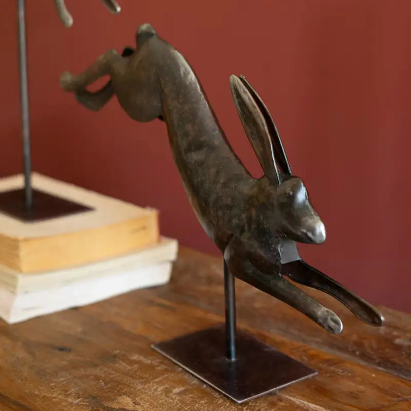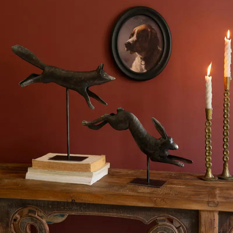 Metal Fox & Rabbit on Stand Set
