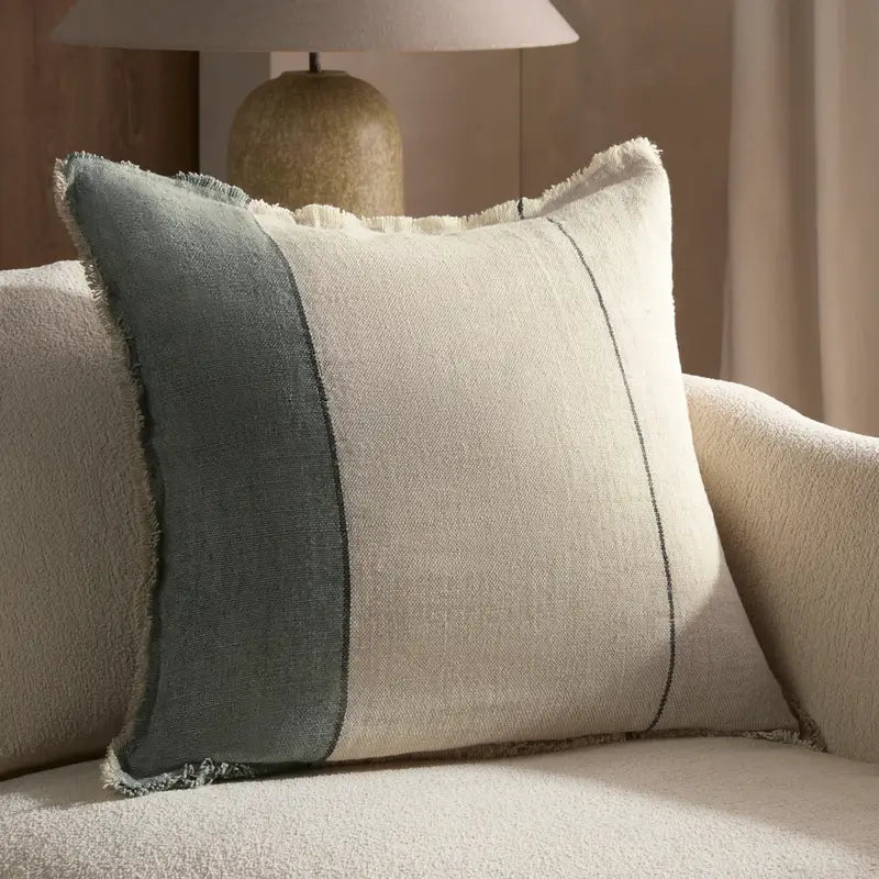 Our Morrigan Throw Pillows, made from 100% linen featuring earthy tones in a block stripe pattern, are perfect for adding a touch of modern sophistication to any space.