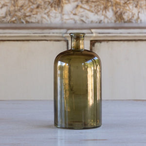 Whether used to display Fall florals or displayed bare in a grouping, these olive green tonic style glass bottles are perfect for adding interest and beauty to any tabletop this Fall.